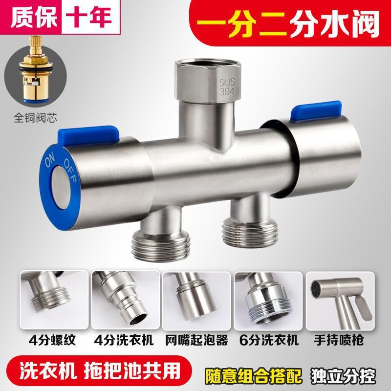 304不锈钢双控角阀一进二出三通分水阀水龙头一分二分水器带开关