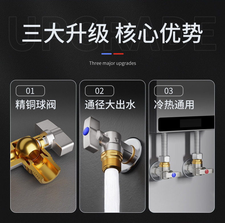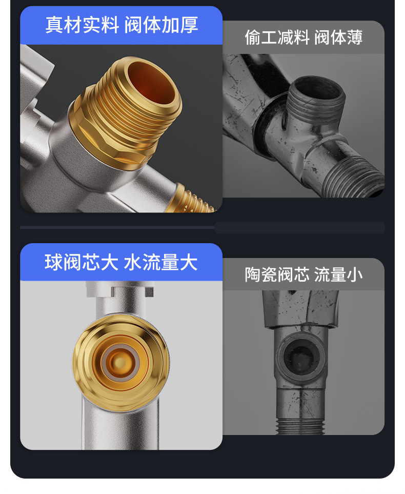 全開大流量角弁球芯ガス給湯器冷水専用家庭用4分全銅三角弁スイッチ