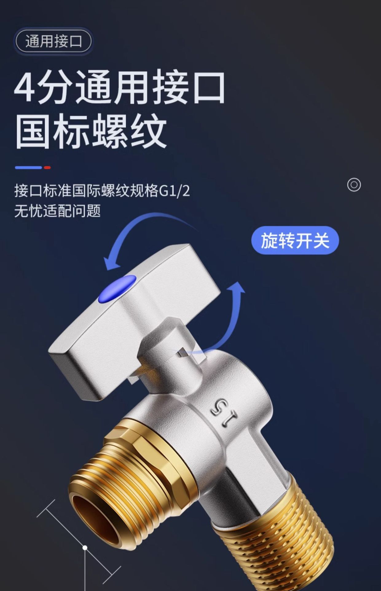 ボールコア全開大流量角弁全銅冷水ガス給湯器専用ボールバルブ三角弁スイッチ4分