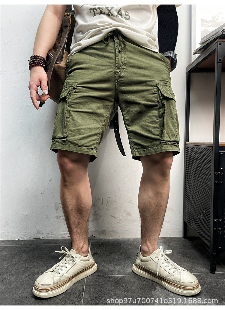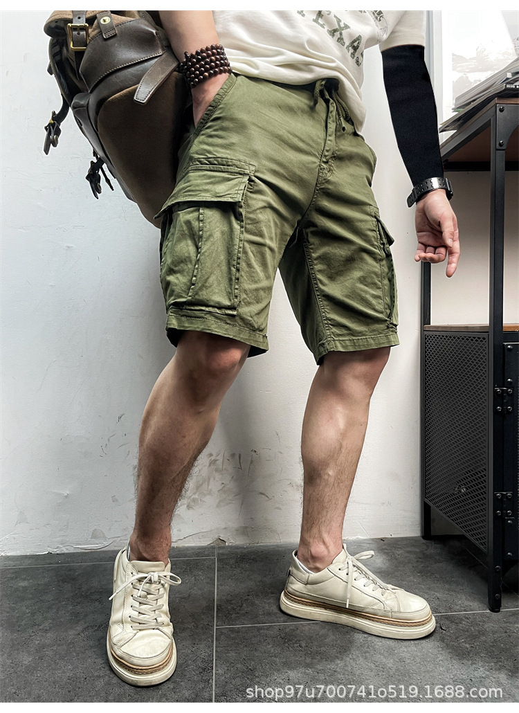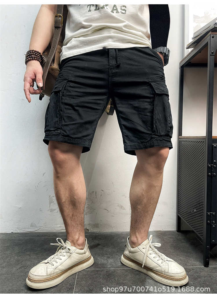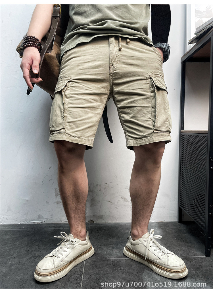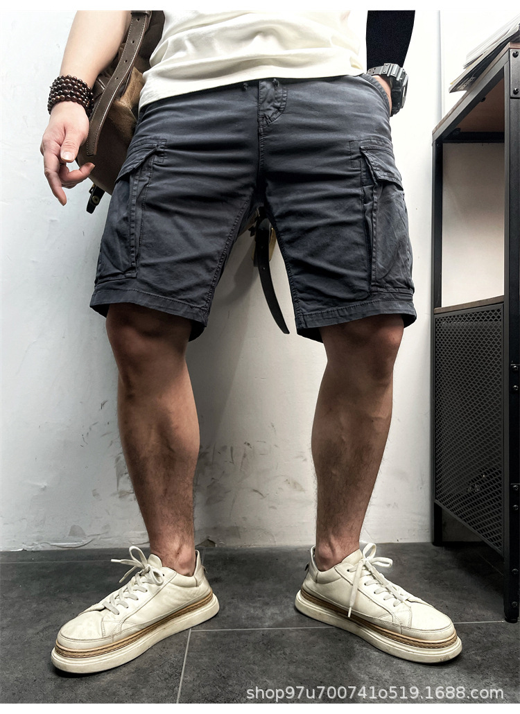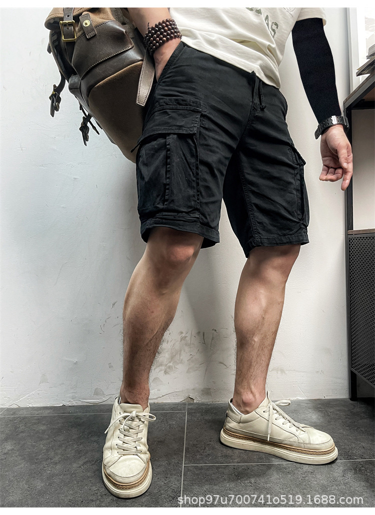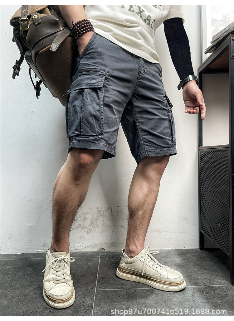アメリカンレトロヘビーウェイトカーゴショーツメンズトレンディブランドハイエンド多用途5点パンツマルチポケットカジュアルスポーツミッドパンツ