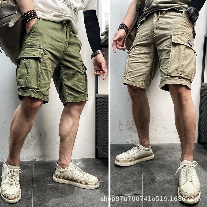 クロスボーダーメンズショートパンツ 日本風貿易カジュアルスポーツパンツ 夏用トレンドブランドワークパンツ メンズ 多ポケットデザイン