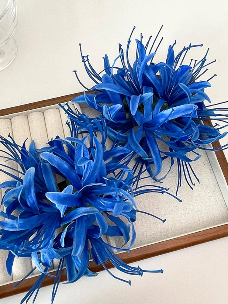 12本の花の頭の青い彼岸の花のシミュレーションのヘアピンのサイドクリップのサイドクリップの精巧な高級感の花嫁の髪飾り