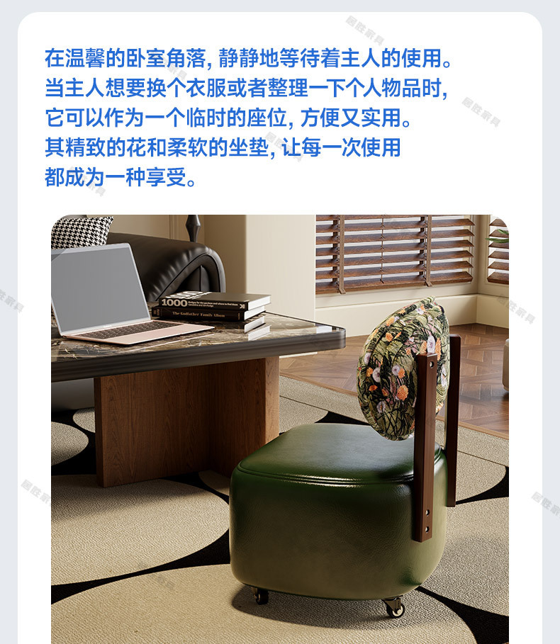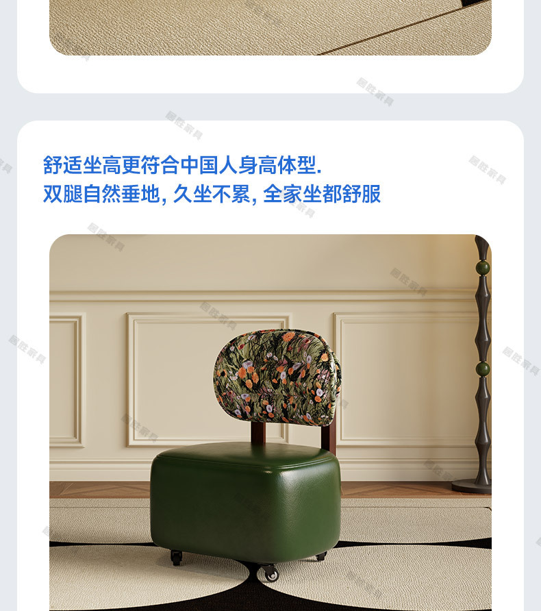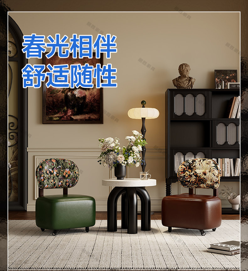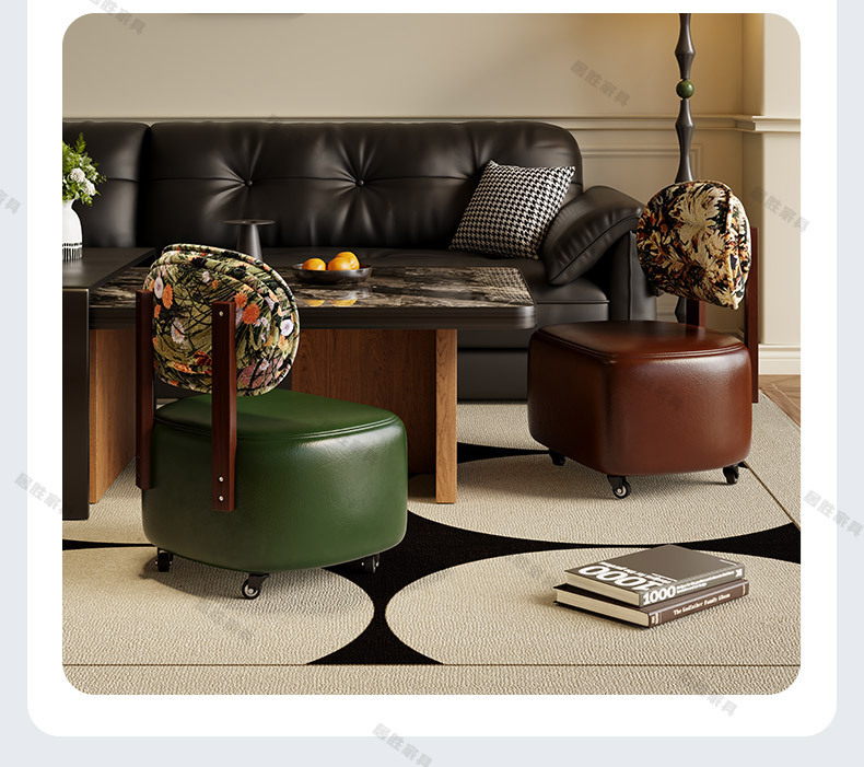 春光滑輪付きスツール、プリント柄無垢材、万能ホイール付き小型ソファスツール、ソフトパッケージ、靴履き替えスツール、移動式家庭用スライドスツール