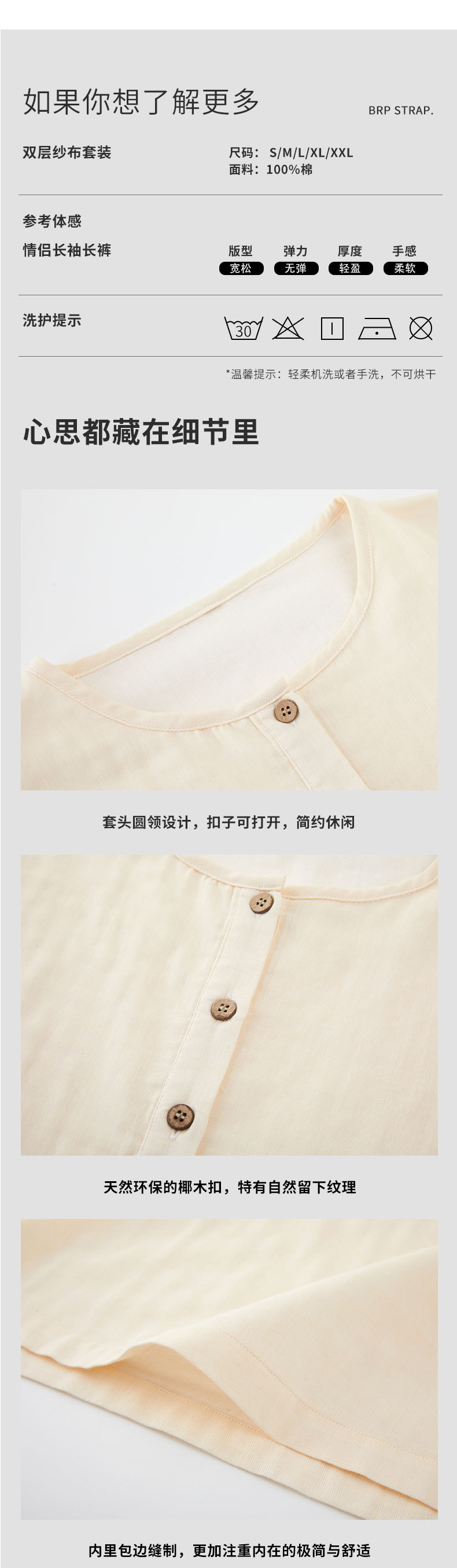 帰真69-無印パジャマ女性春秋綿カップルホームウェア綿ガーゼ高級感長袖セット