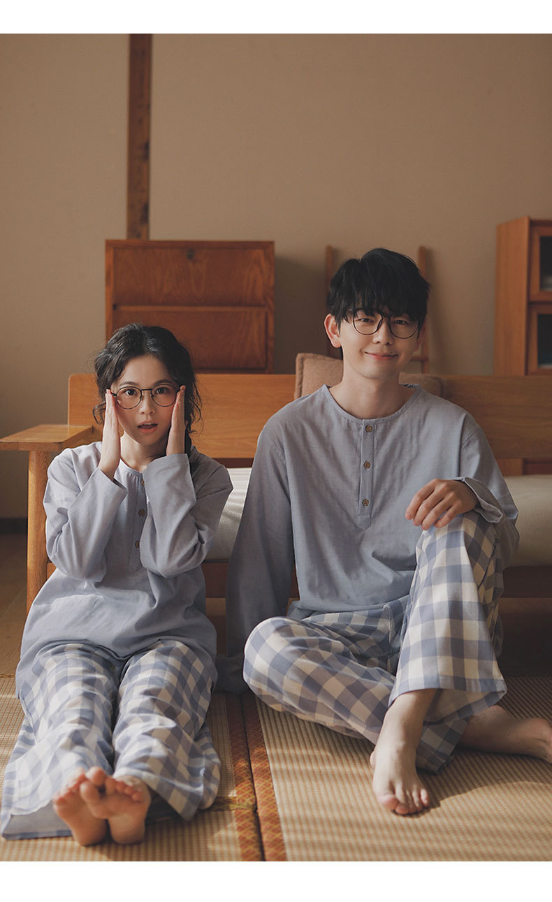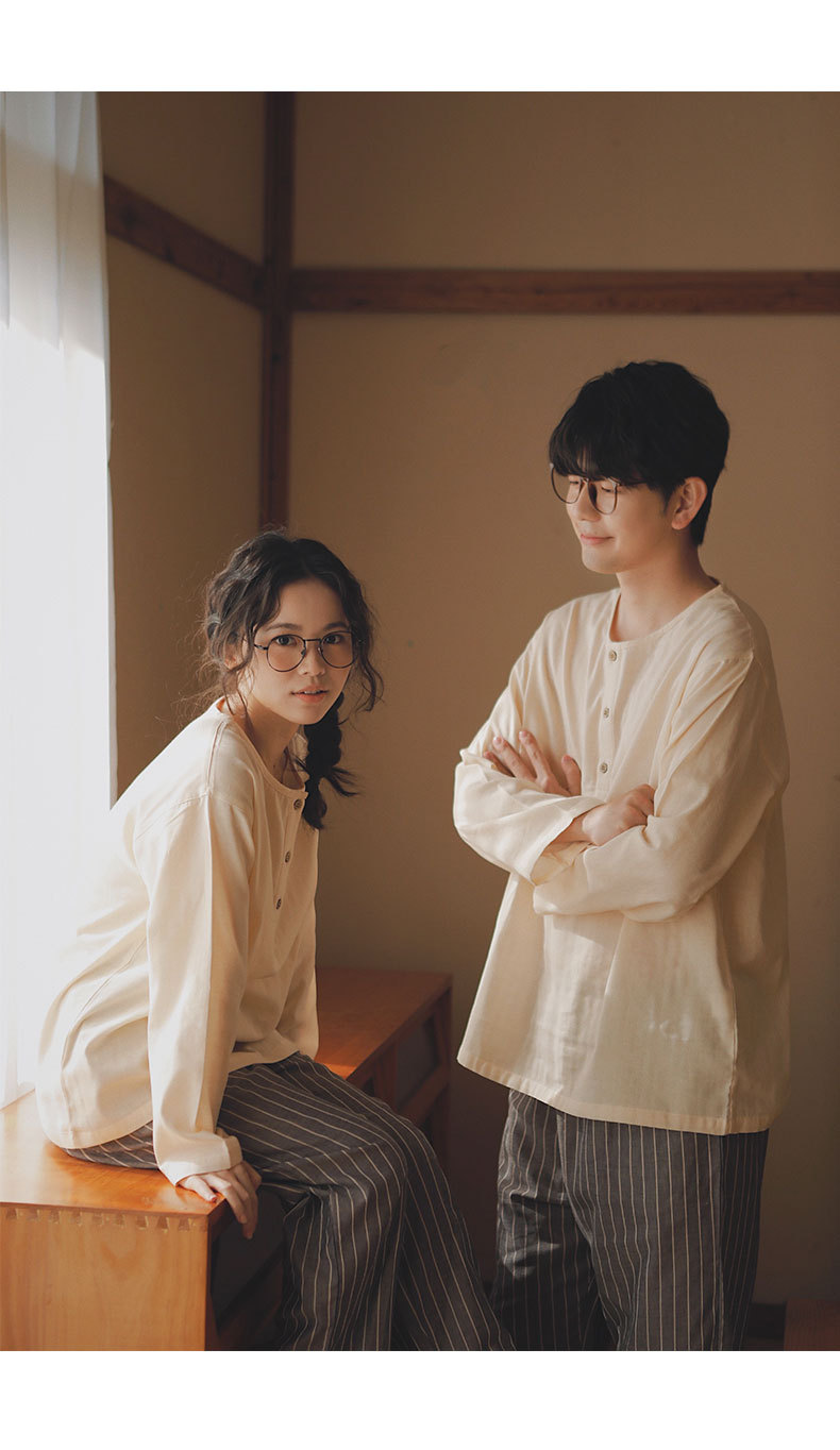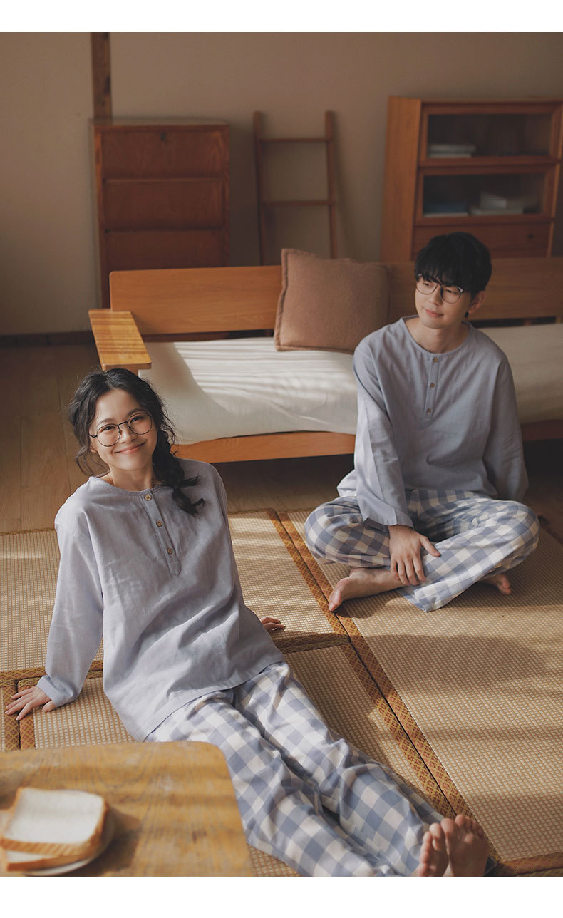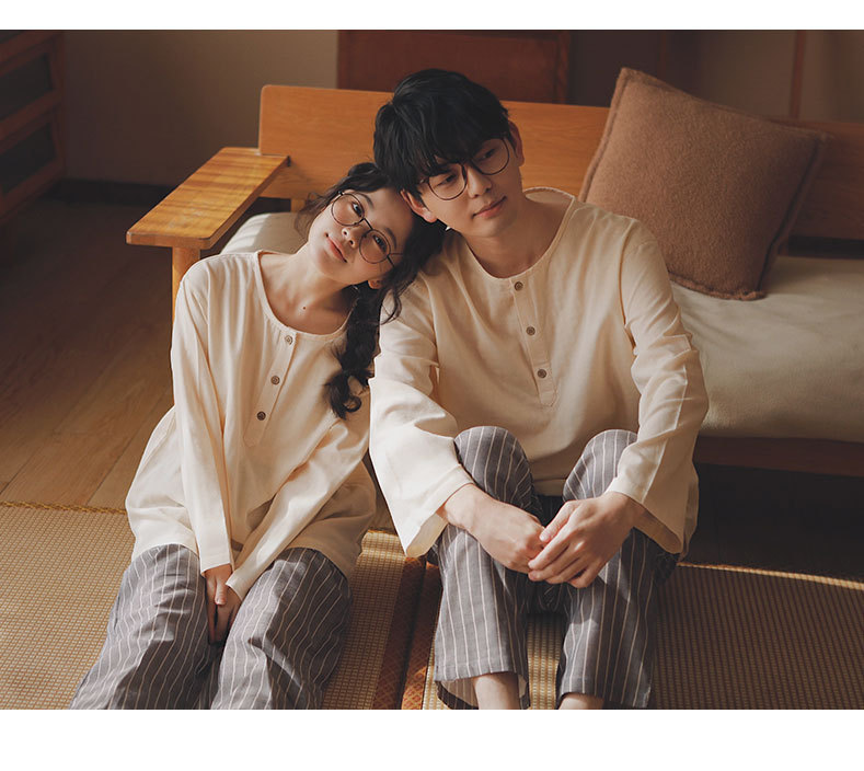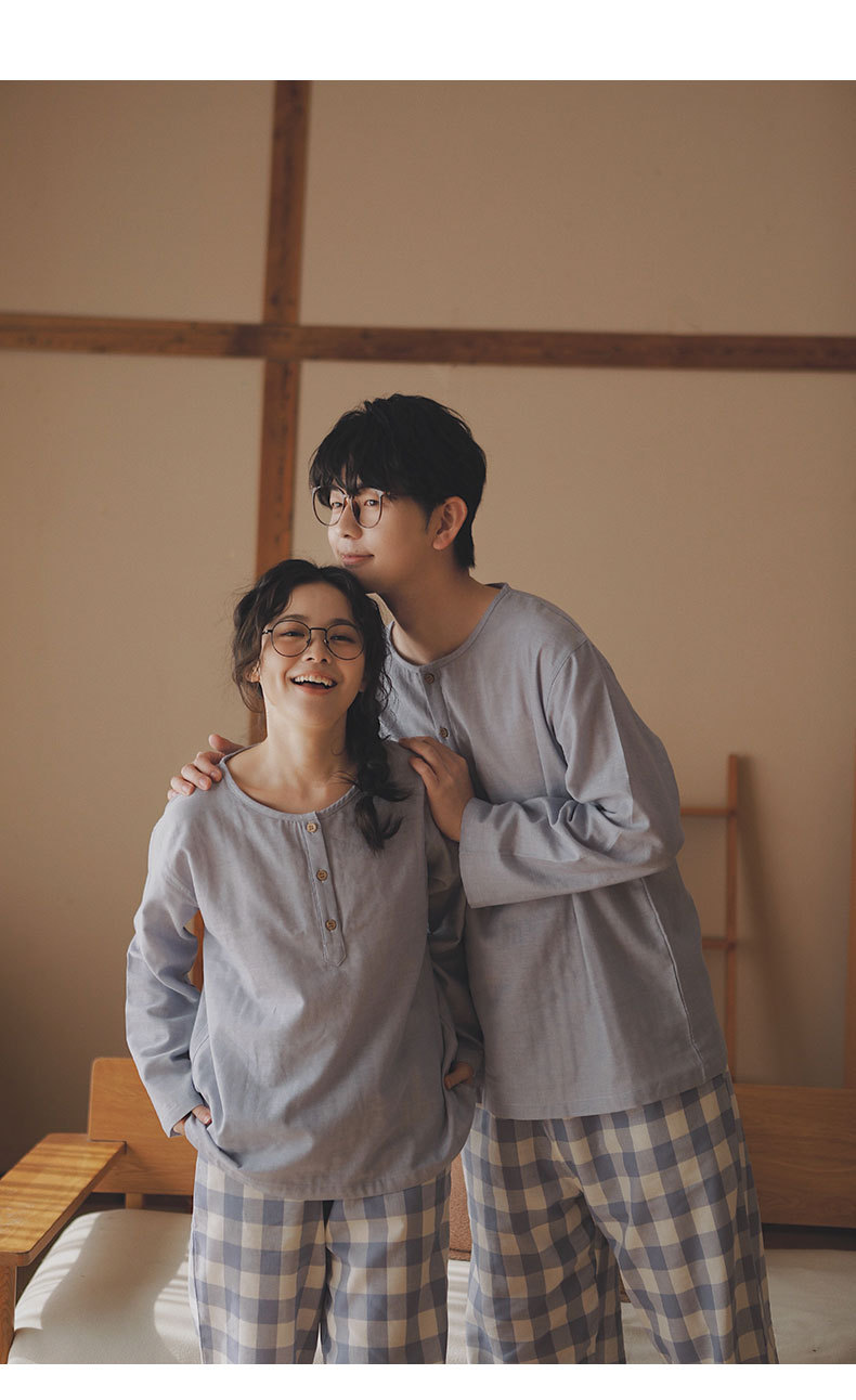 現在の77-無印ブランドパジャマメンズ2025新作カップルセット春秋用純綿ガーゼ素材で外出着としても使えるホームウェア