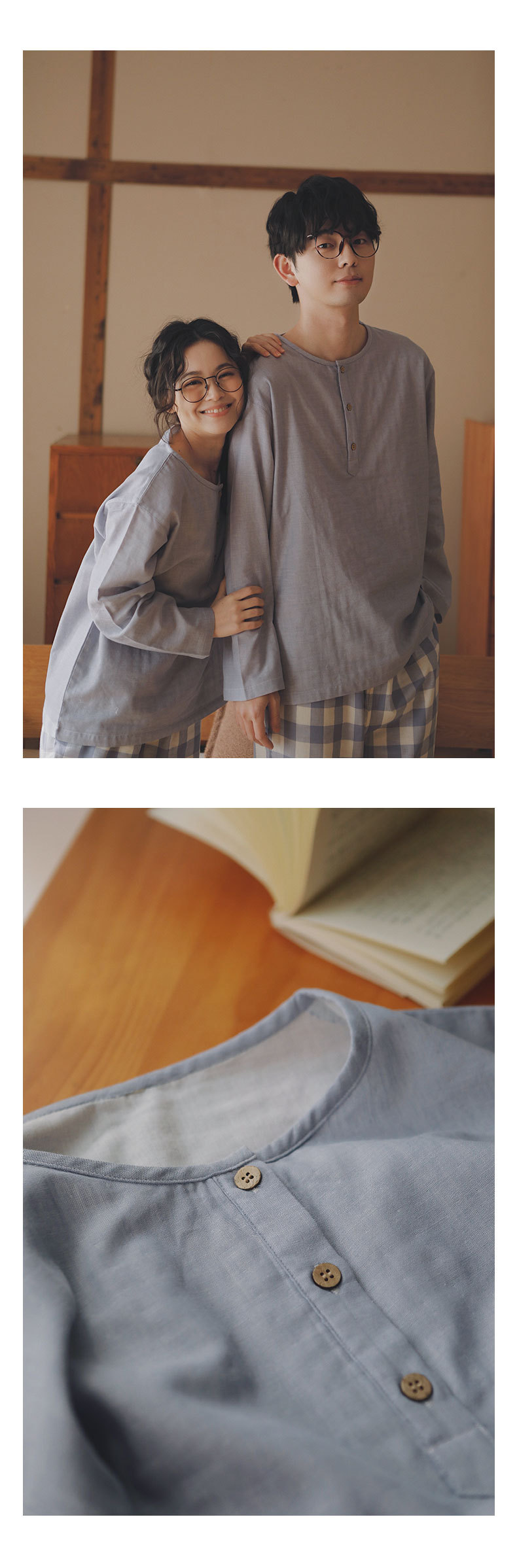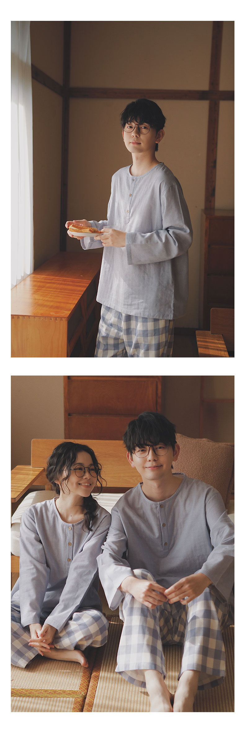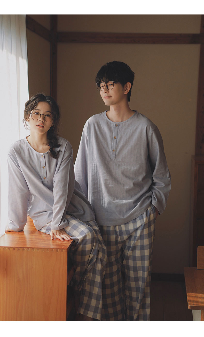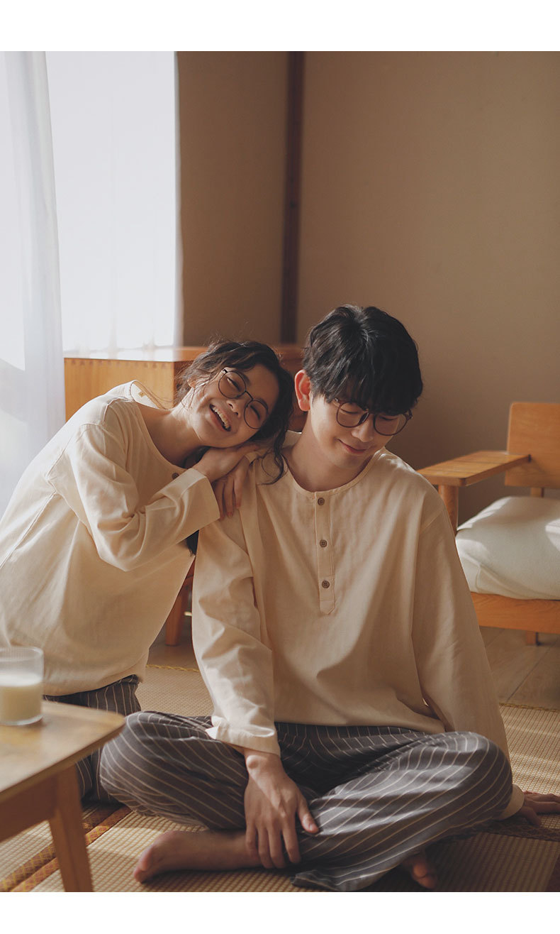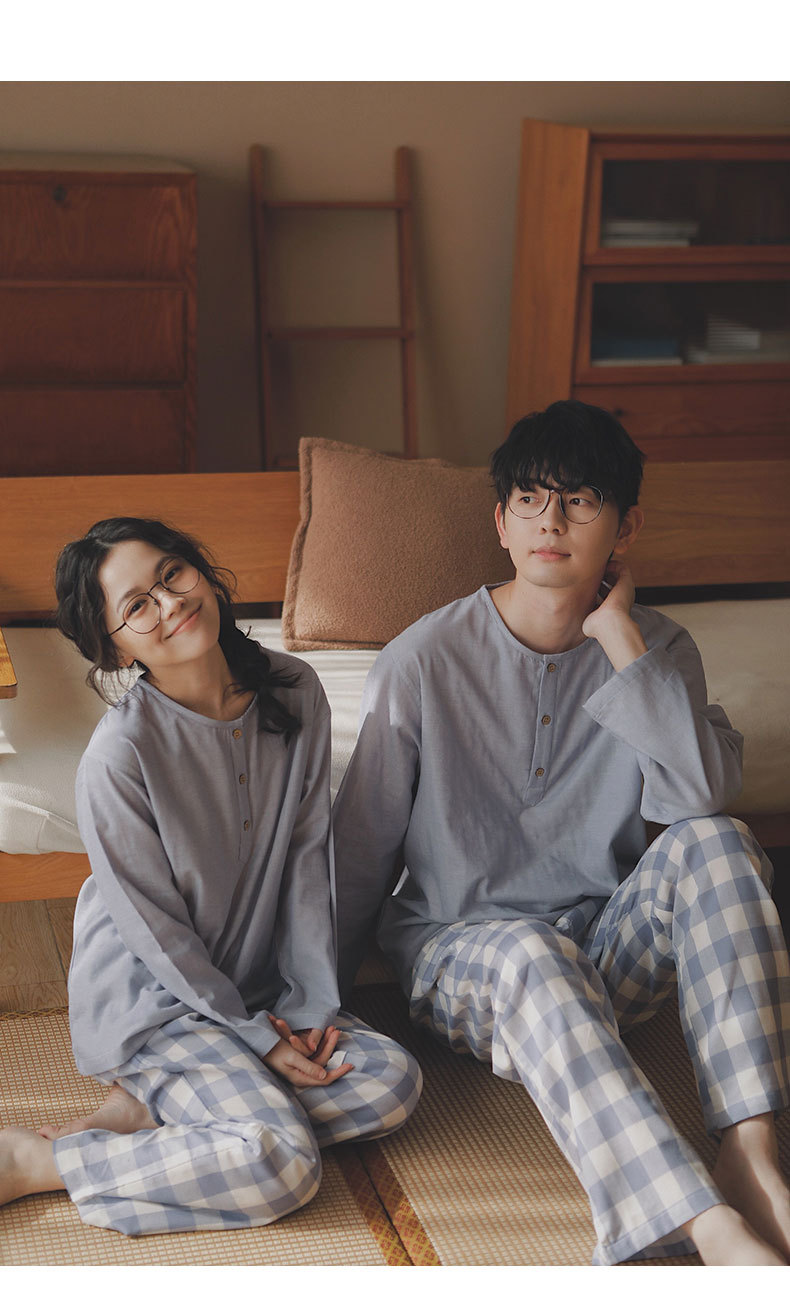 現在の77-無印ブランドパジャマメンズ2025新作カップルセット春秋用純綿ガーゼ素材で外出着としても使えるホームウェア