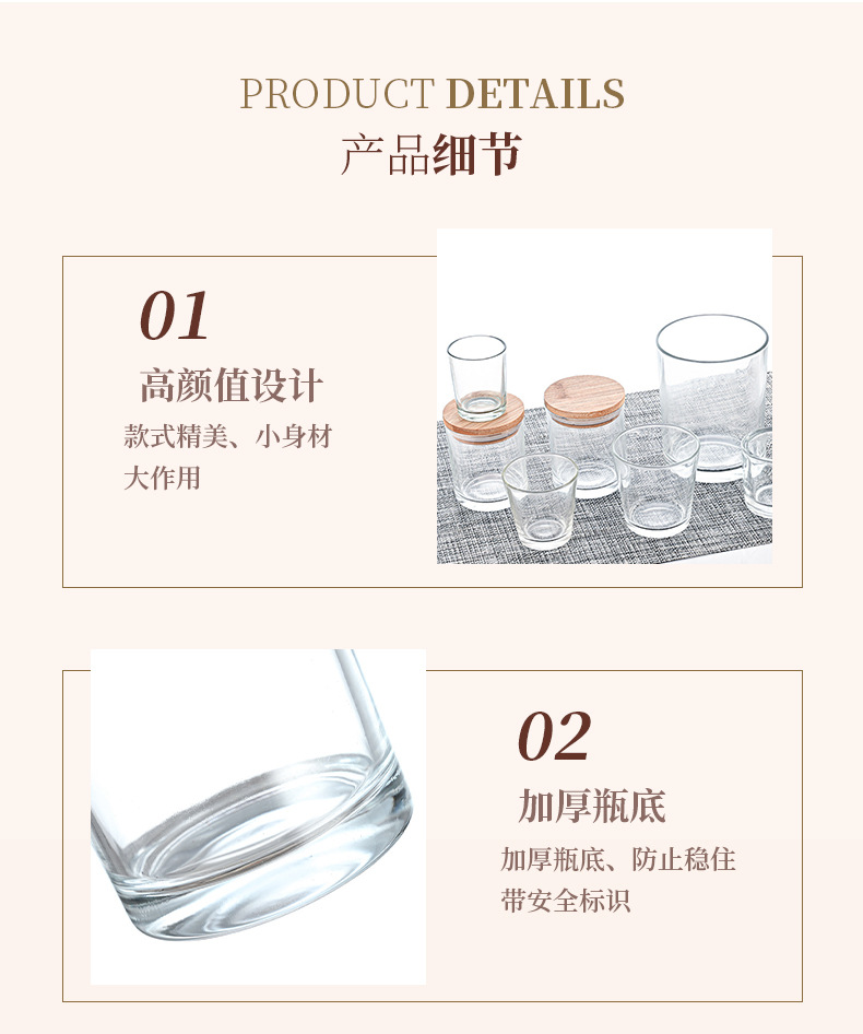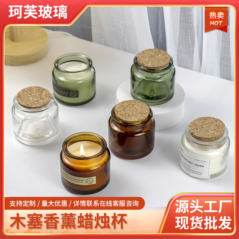 DIY装蜡容器木塞玻璃香薰蜡烛杯家居摆件复古茶色耐高温带盖烛台