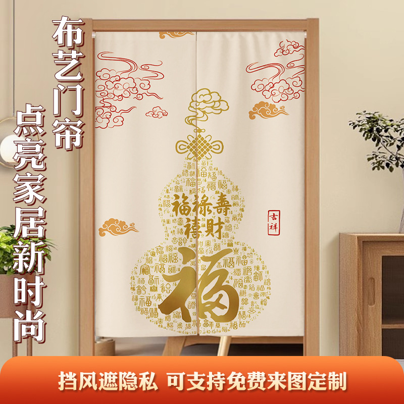 中式门帘隔断帘禅意挂帘家用客厅装饰门帘卧室免打孔厕所遮挡半帘