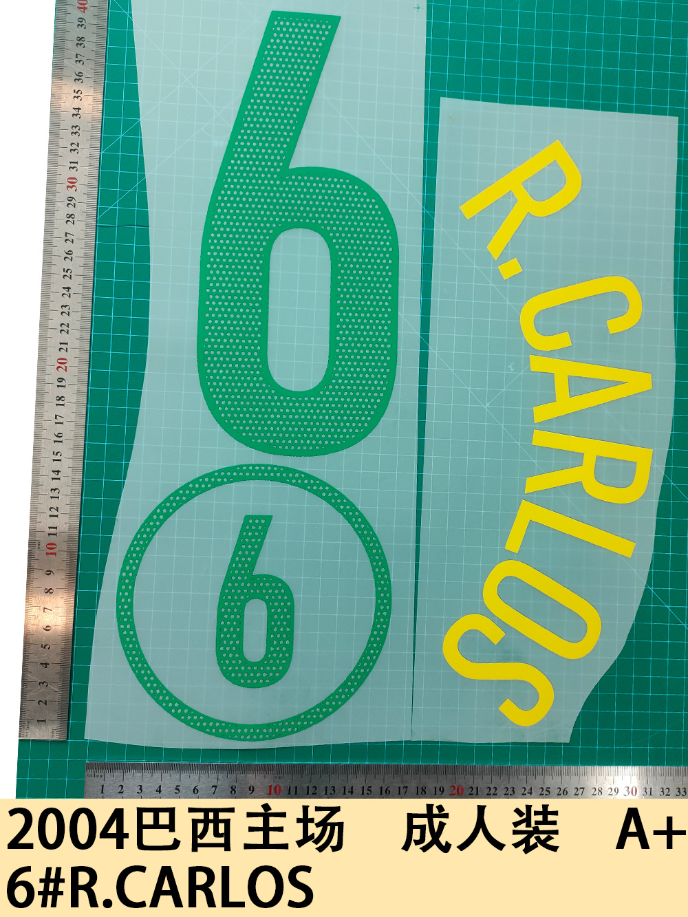 2004ブラジルホーム成人服A 6 # R.カルロスコート番号アルファベット熱転写シール