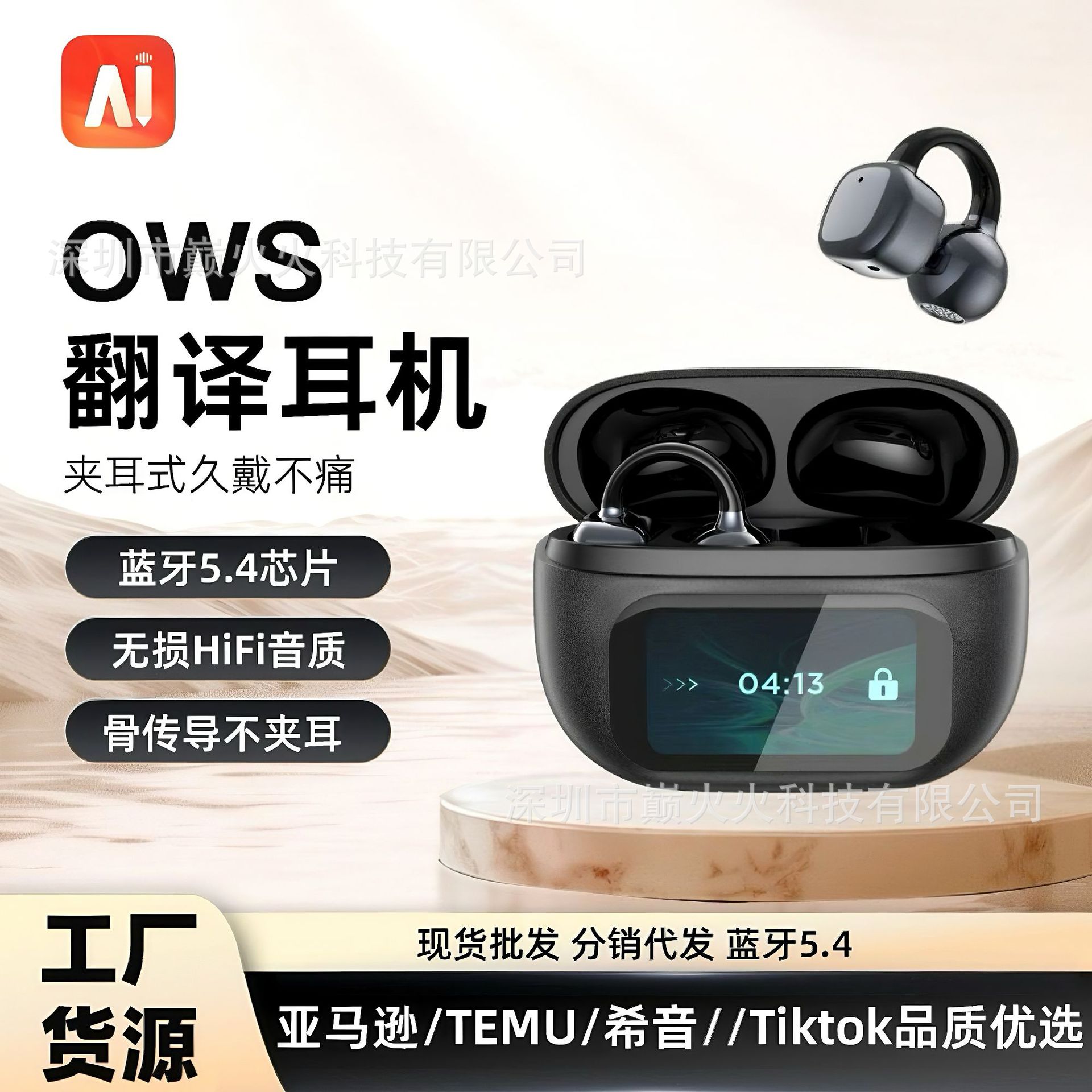 temu 人気の名品 AI 翻訳ヘッドフォン G08 スマート カラー スクリーン ows イヤーマウント クリップオン Bluetooth ヘッドフォン