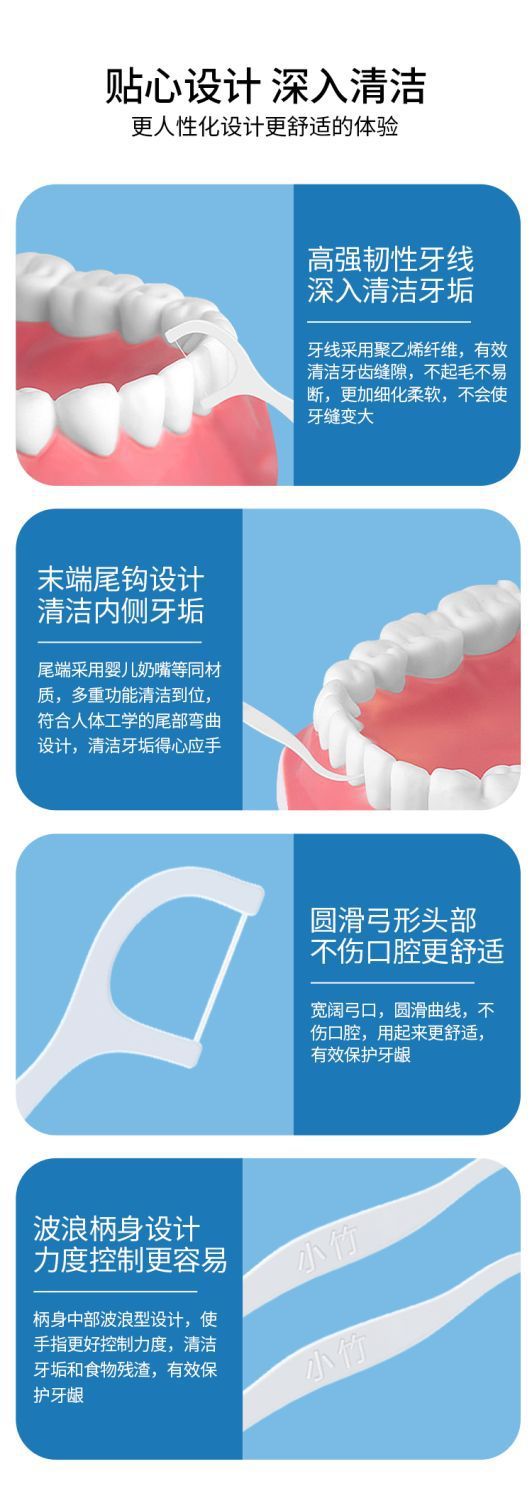 竹木王子フロススティック使い捨て歯間ブラシ高分子家庭用子供用歯間清掃50本入り箱義烏