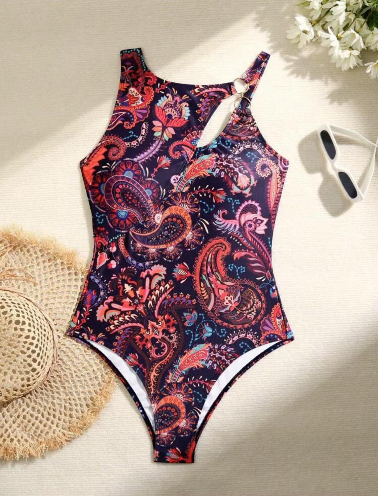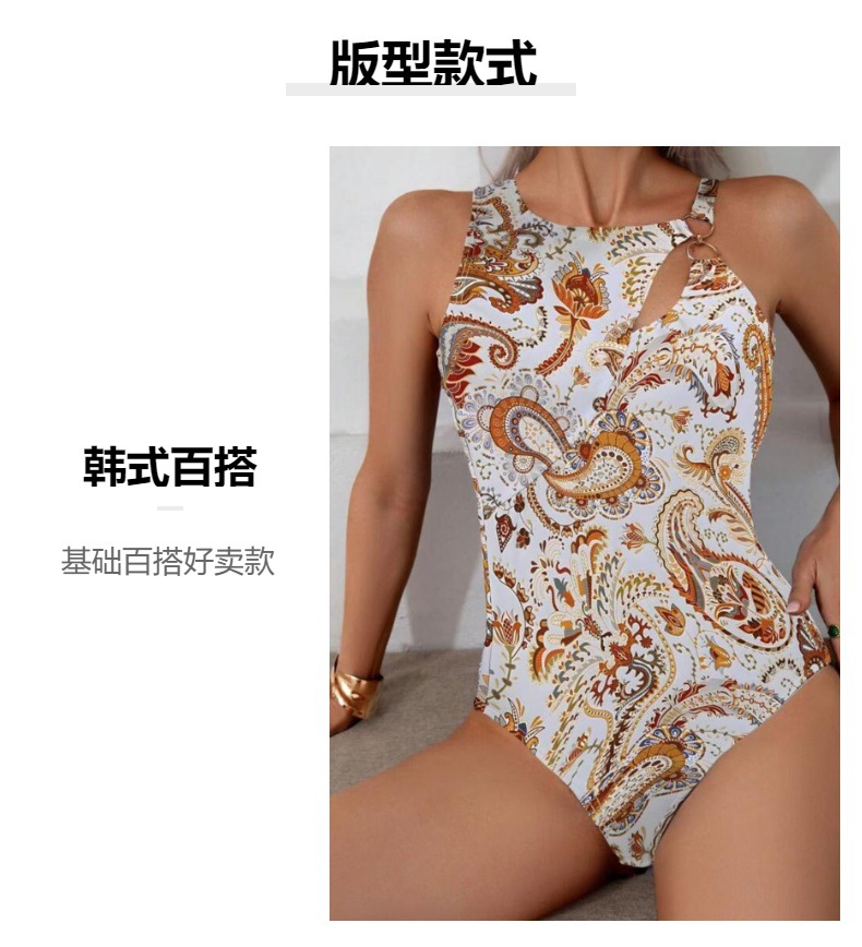 速売通2025対外貿易ワンピース水着女性欧米vネックプリント一体式ビキニ水着