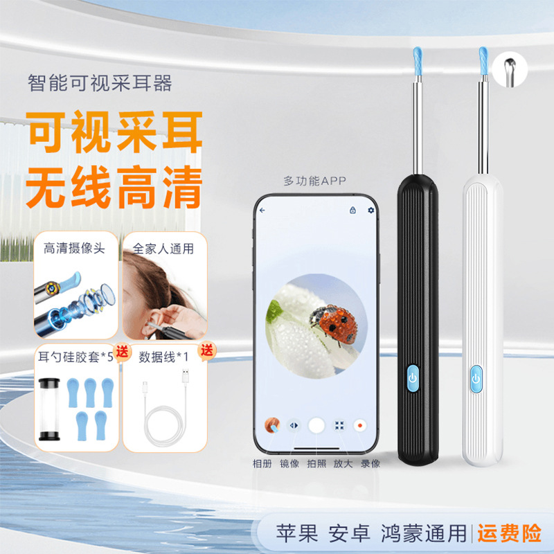炎迪欧 跨境爆款可视掏耳勺带夹子儿童智能无线高清挖耳神器采耳