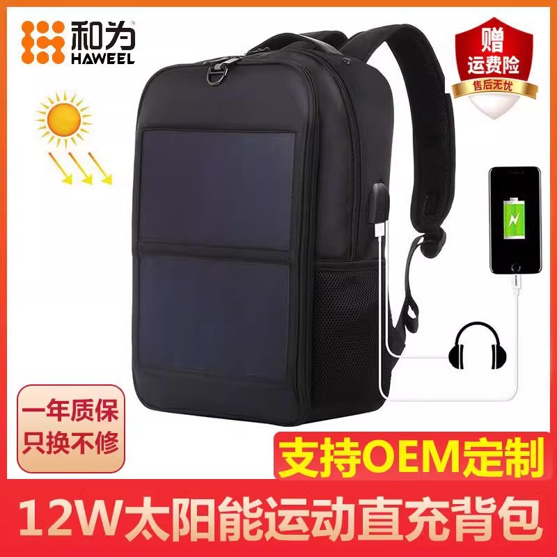 ソーラー充电バックパック大容量5v直充高効率ボードUSBアウトドア12w旅行登山ビジネスランドセル