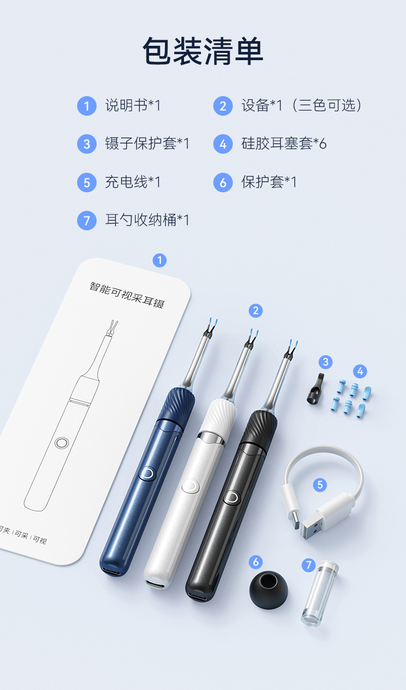 新款C7 Pro可视化掏耳勺带镊子家用WiFi可视挖耳勺夹子套装超清款
