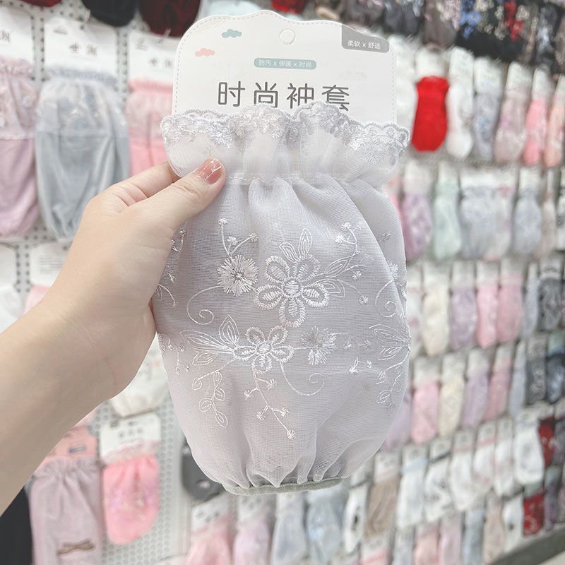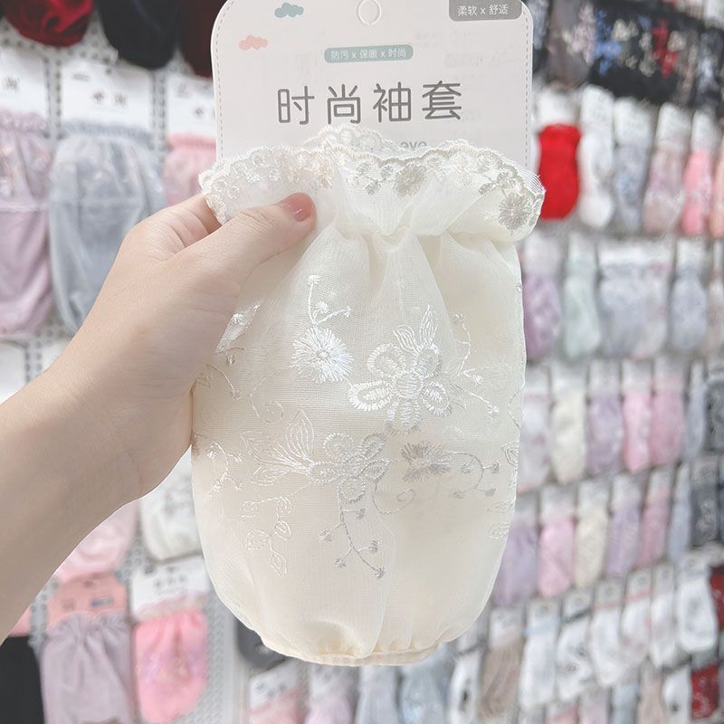 二重網糸レース袖カバー女性秋冬汚れ防止カバー袖成人学生袖筒白黒ベージュ透明保護塘鑫