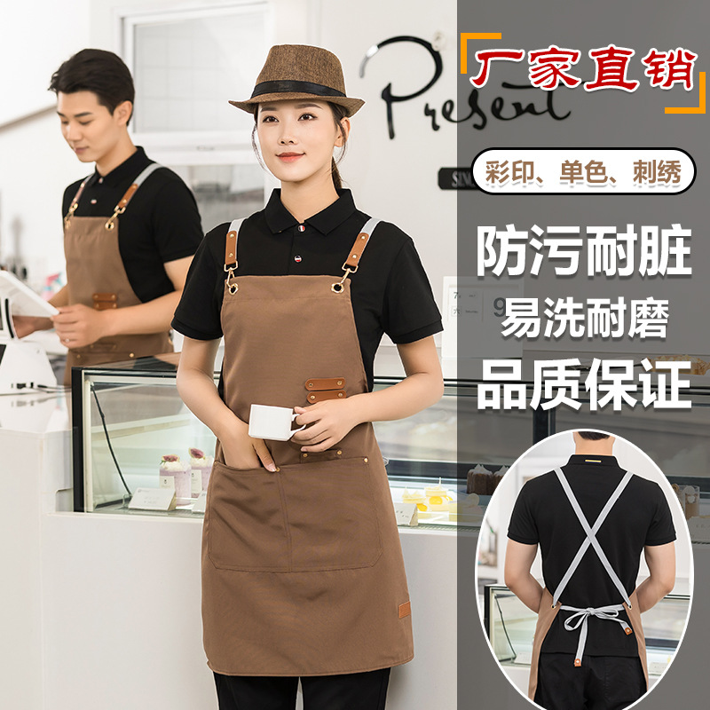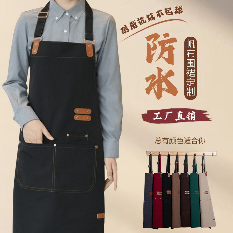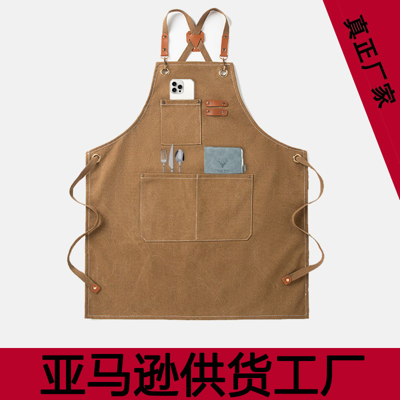 アマゾンクロスボーダー帆布エプロンカスタム防水防油キッチン飲食ミルクティー作業服汚れに強い