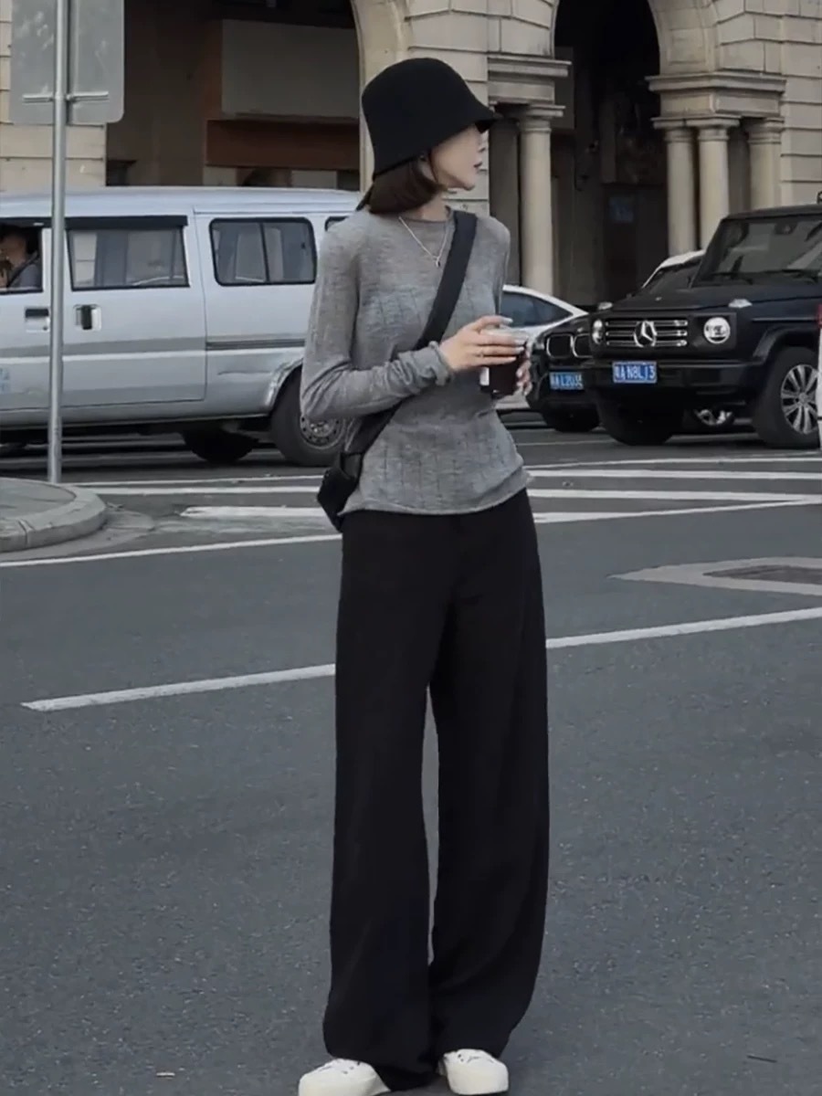 25デザインセンスのある秋冬グレーウールラウンドネックカーディガンレディースカシミヤニット万能長袖セーターゆったりスタイルトップス
