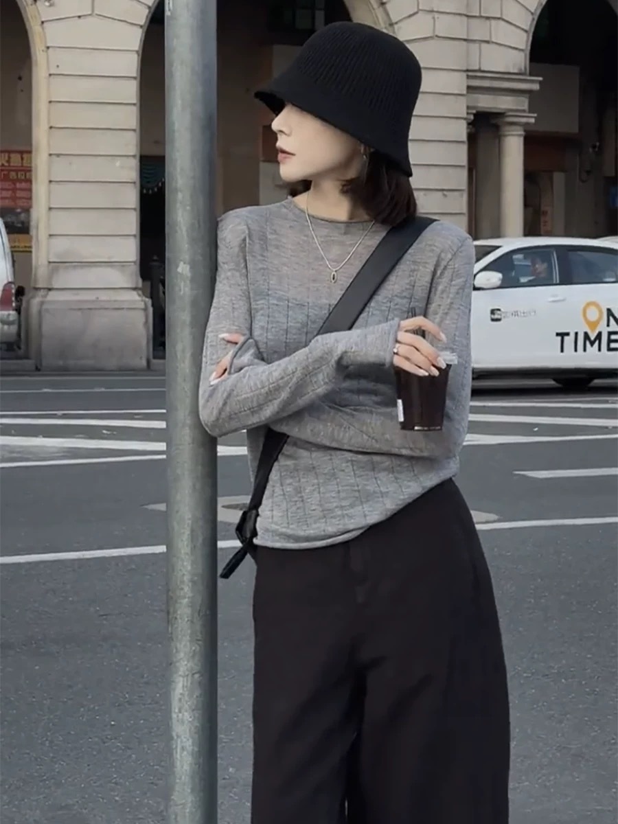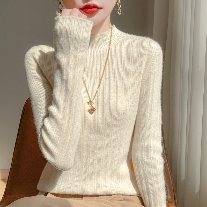 精纺羊毛针织贴身打底衫女秋冬新款修身一线成衣半高领内搭毛衣女