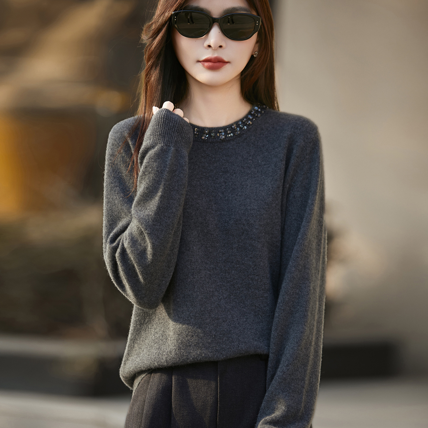 25订钻100全羊毛衫女秋冬款内搭圆领针织衫打底上衣套头毛衣修身
