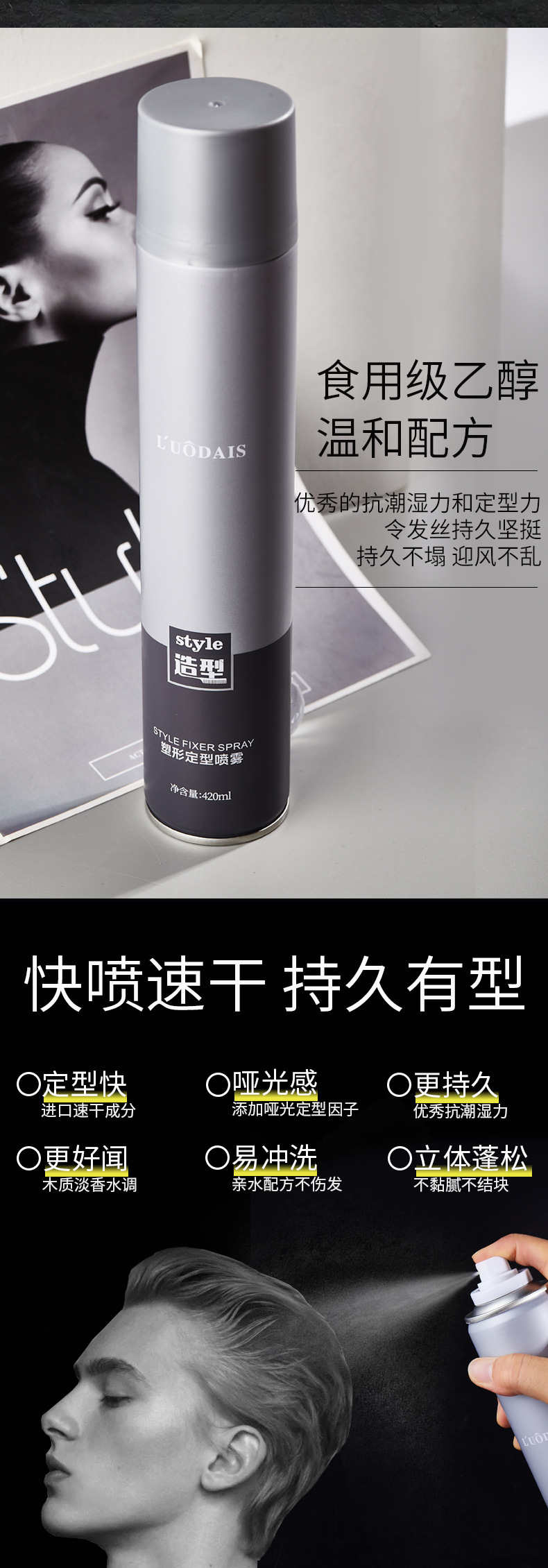 洛黛詩ヘアゴム定型スプレー男性持続清香型強力理髪店メーカー卸売り420ml