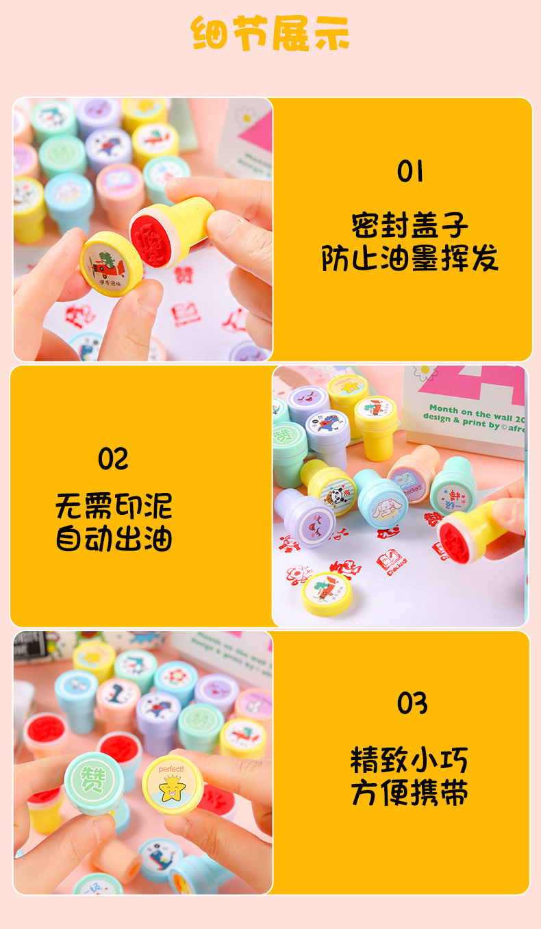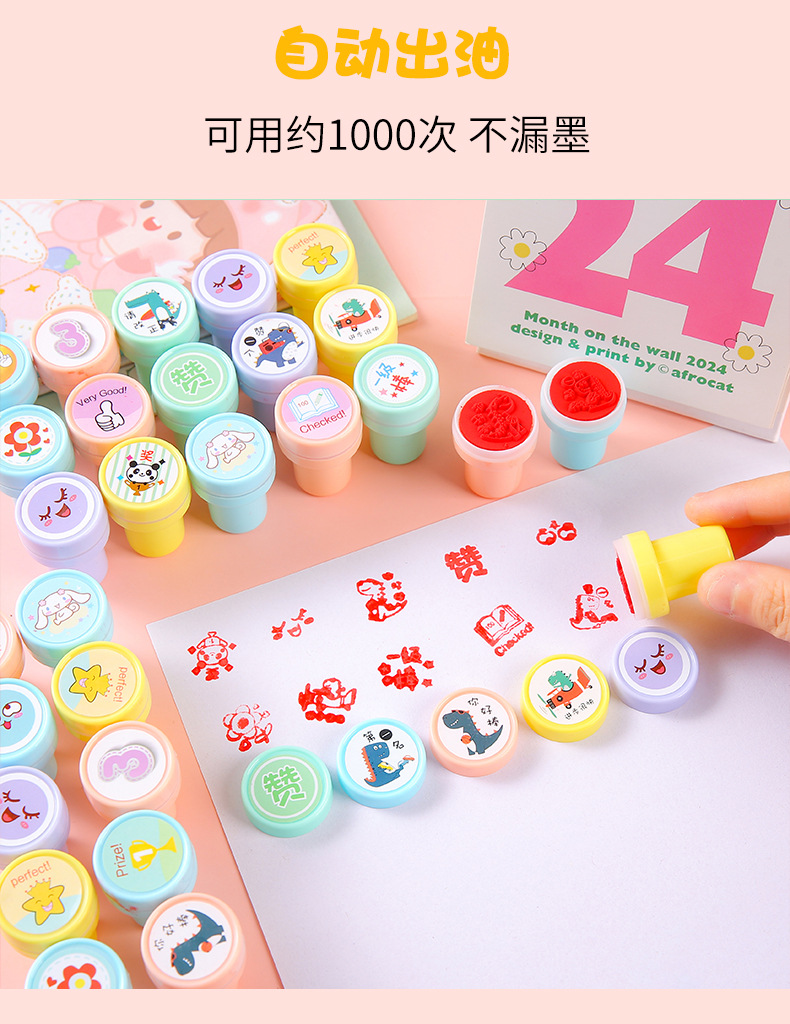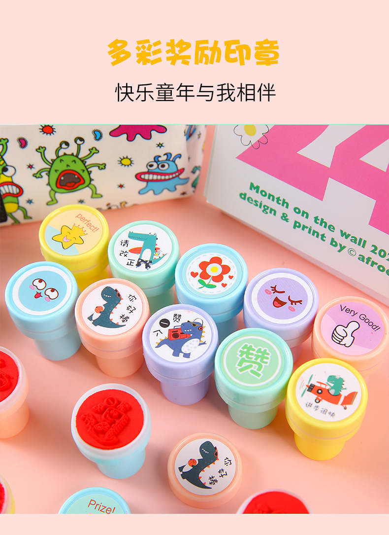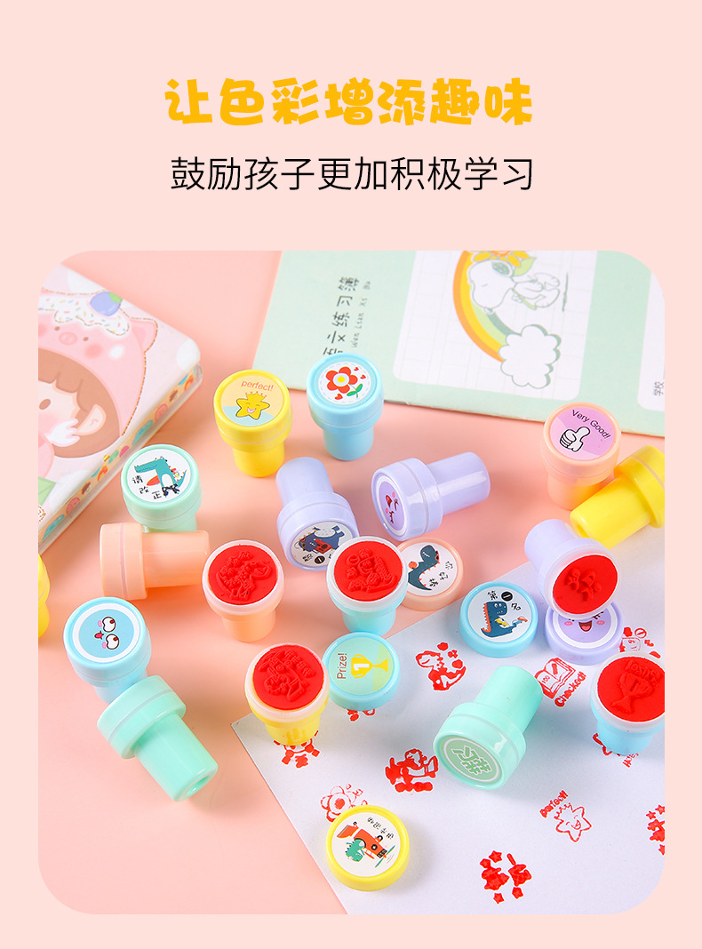 先生は印鑑の子供の漫画のかわいい小さい印鑑の幼稚園の子供を評価してクラスの組み合わせの贈り物の卸売りを贈呈します。