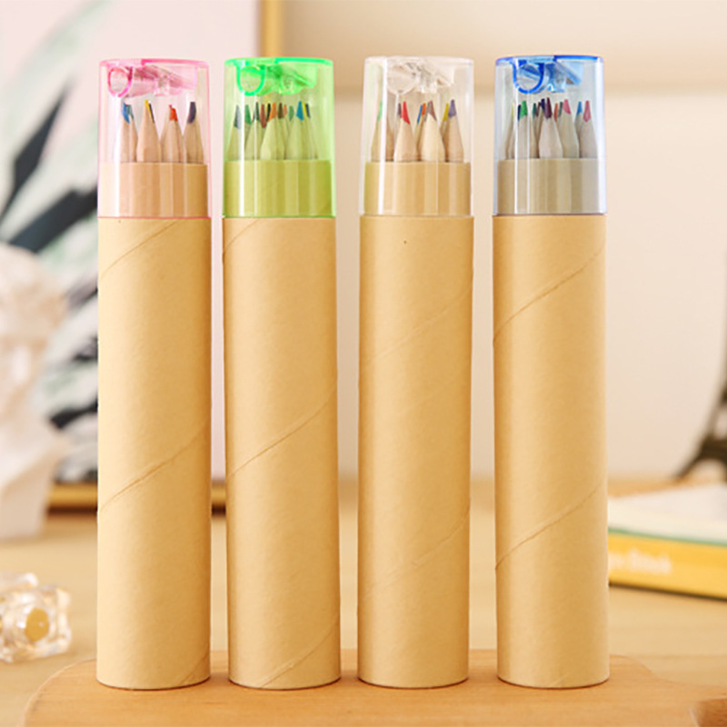 国境を越えた卸売 12 色ログチューブ色鉛筆学用品学生絵画ロゴ子供のギフト色鉛