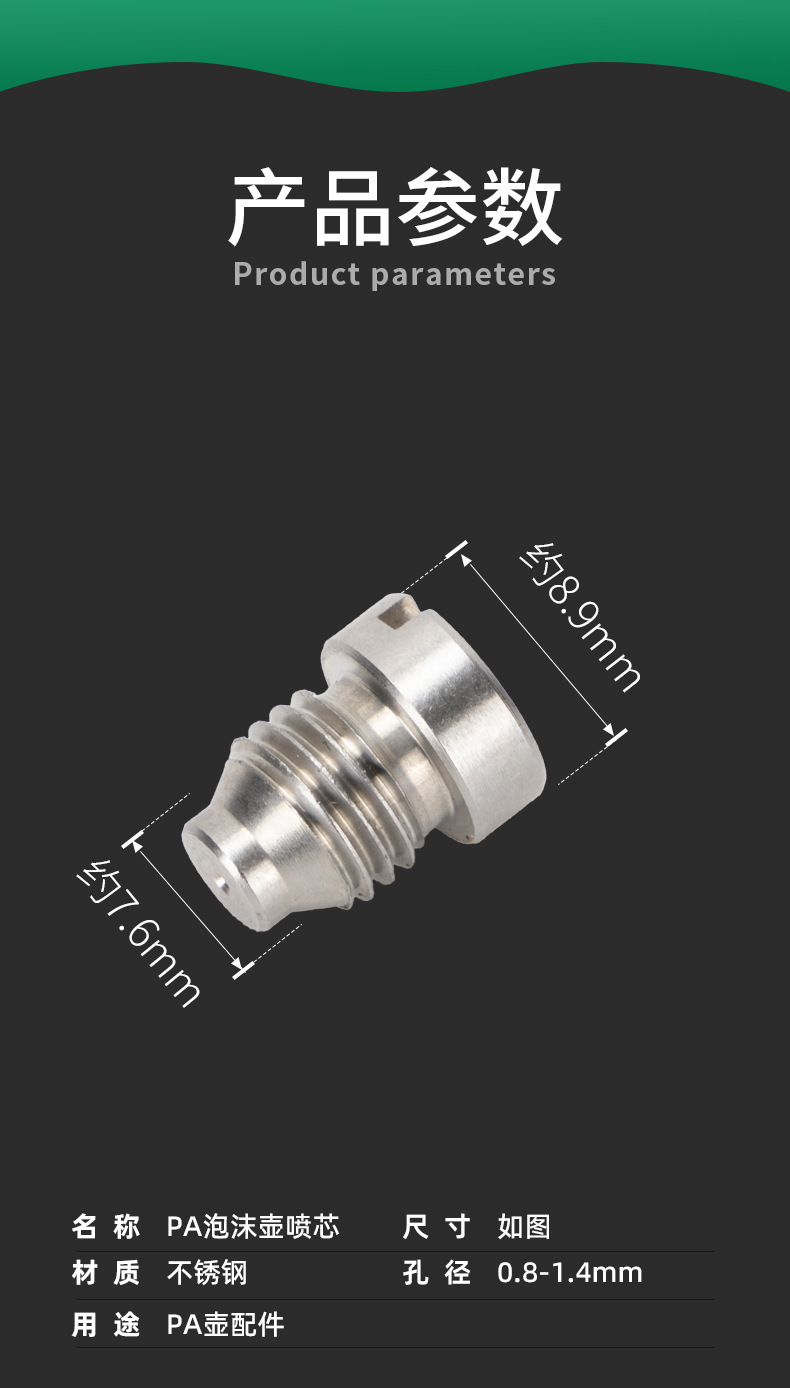 PA壶喷芯泡沫壶改装配件吸液管进水铜喷嘴高压喷壶不锈钢材质批发