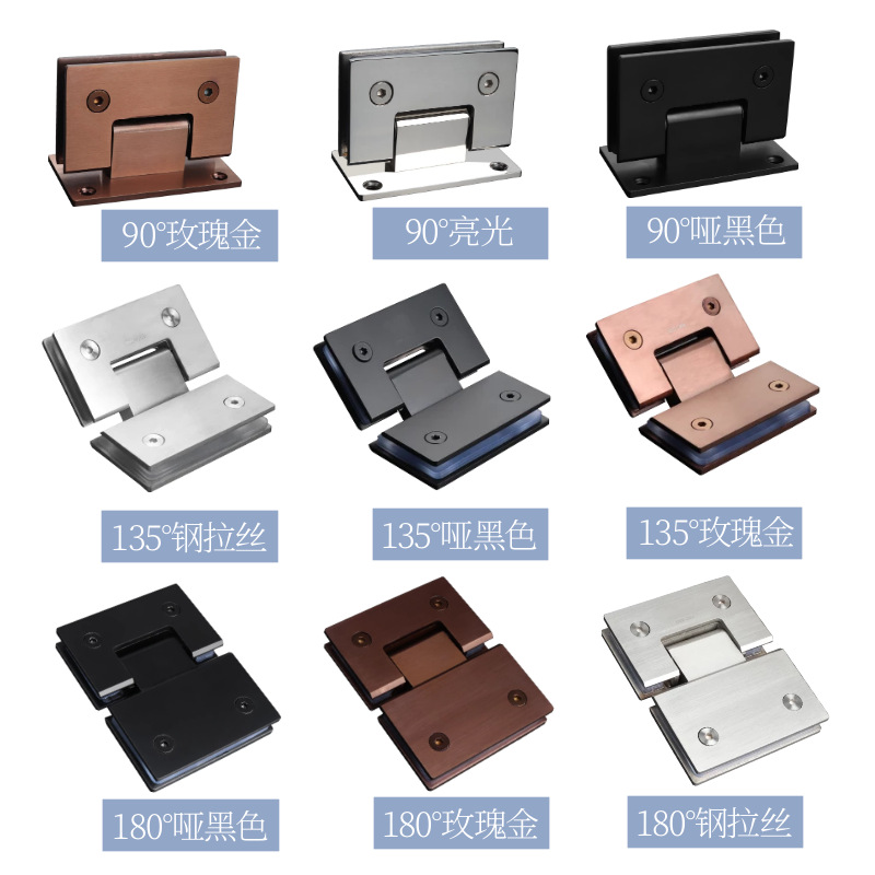 ローズゴールド304ステンレス90度バスルームクリップシャワールーム合ページマット黒ガラスドアクリップヒンジ180度折りページ