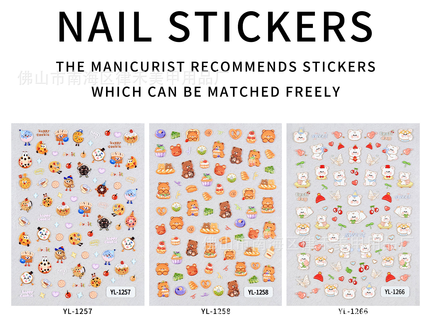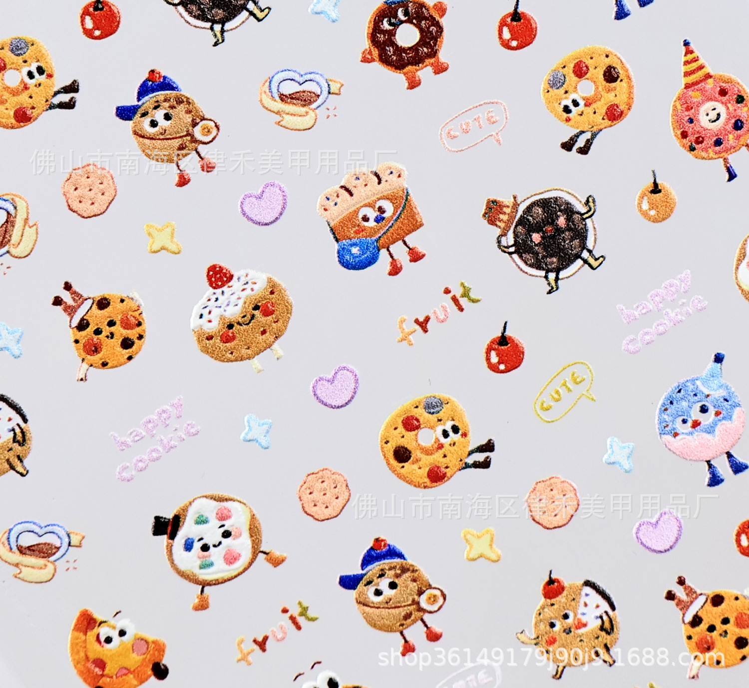 ネット赤レリーフバター熊ネイルシールかわいい漫画ケーキクリームクッキー白熊バックゴム爪貼り