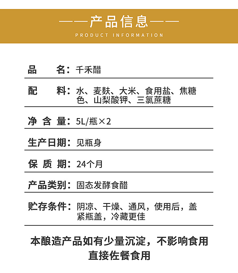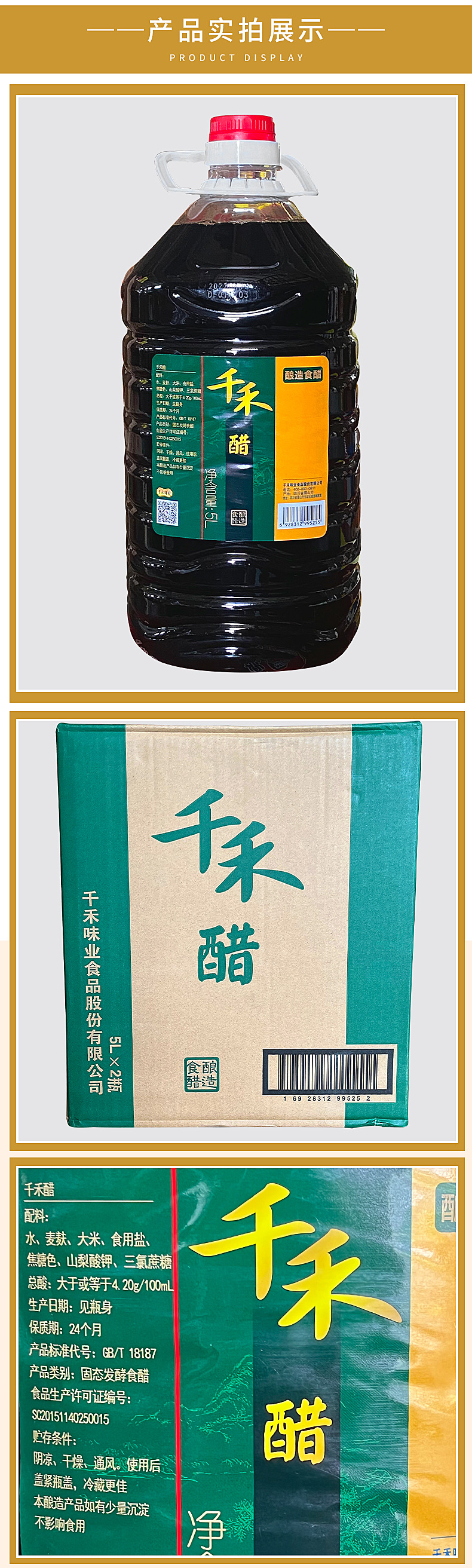 包郵便千禾酢5L * 2バレルの箱全体醸造食酢10斤重慶小面酸辣粉米線飲食商用酢