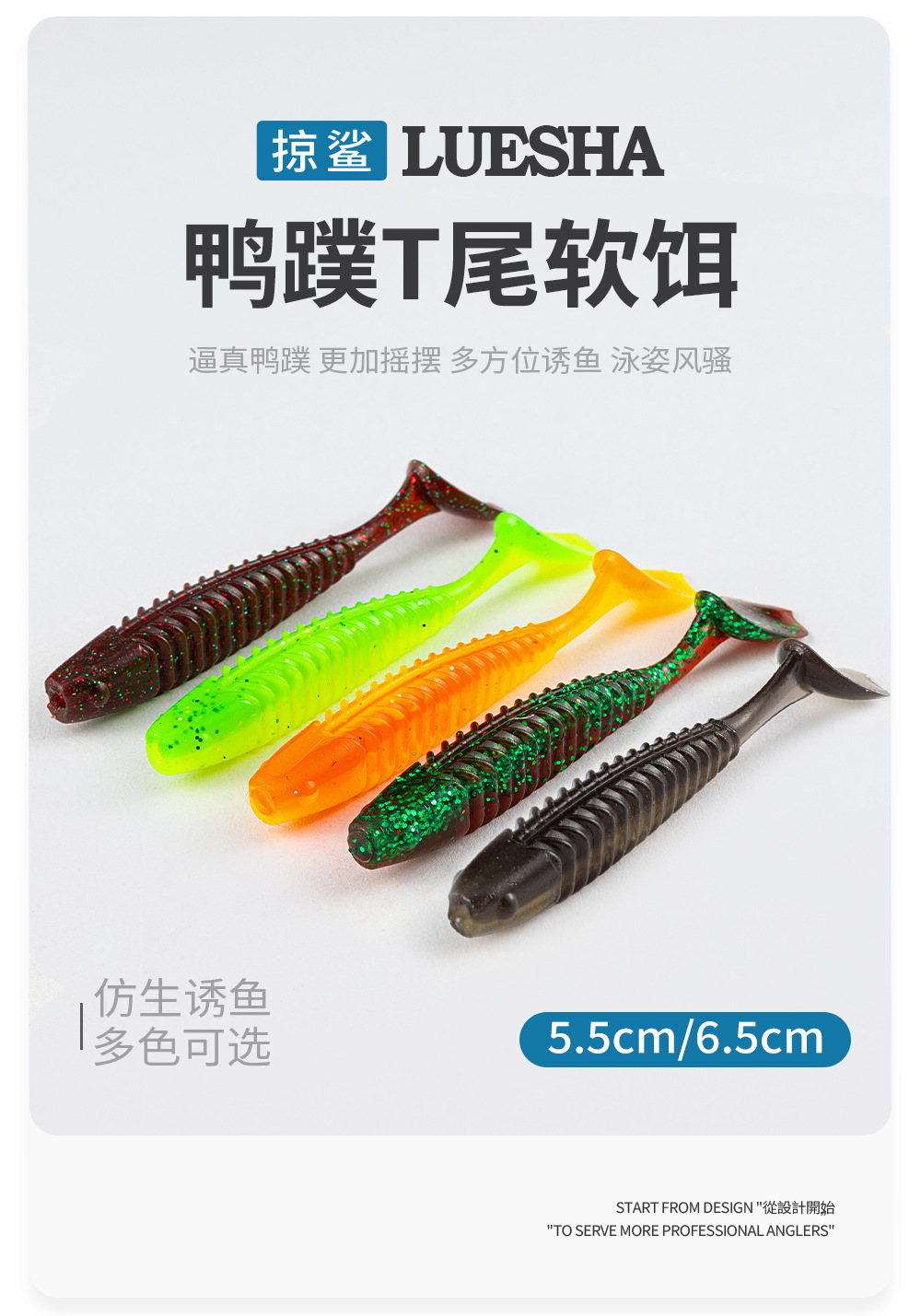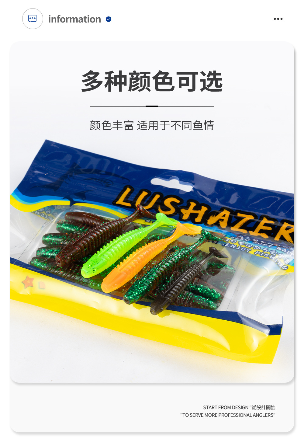 掠鲨|20条装T尾软饵螺纹路亚软饵假饵恰铅头钩曲柄钩黑坑tpe加腥