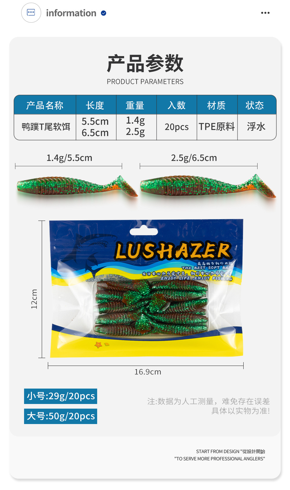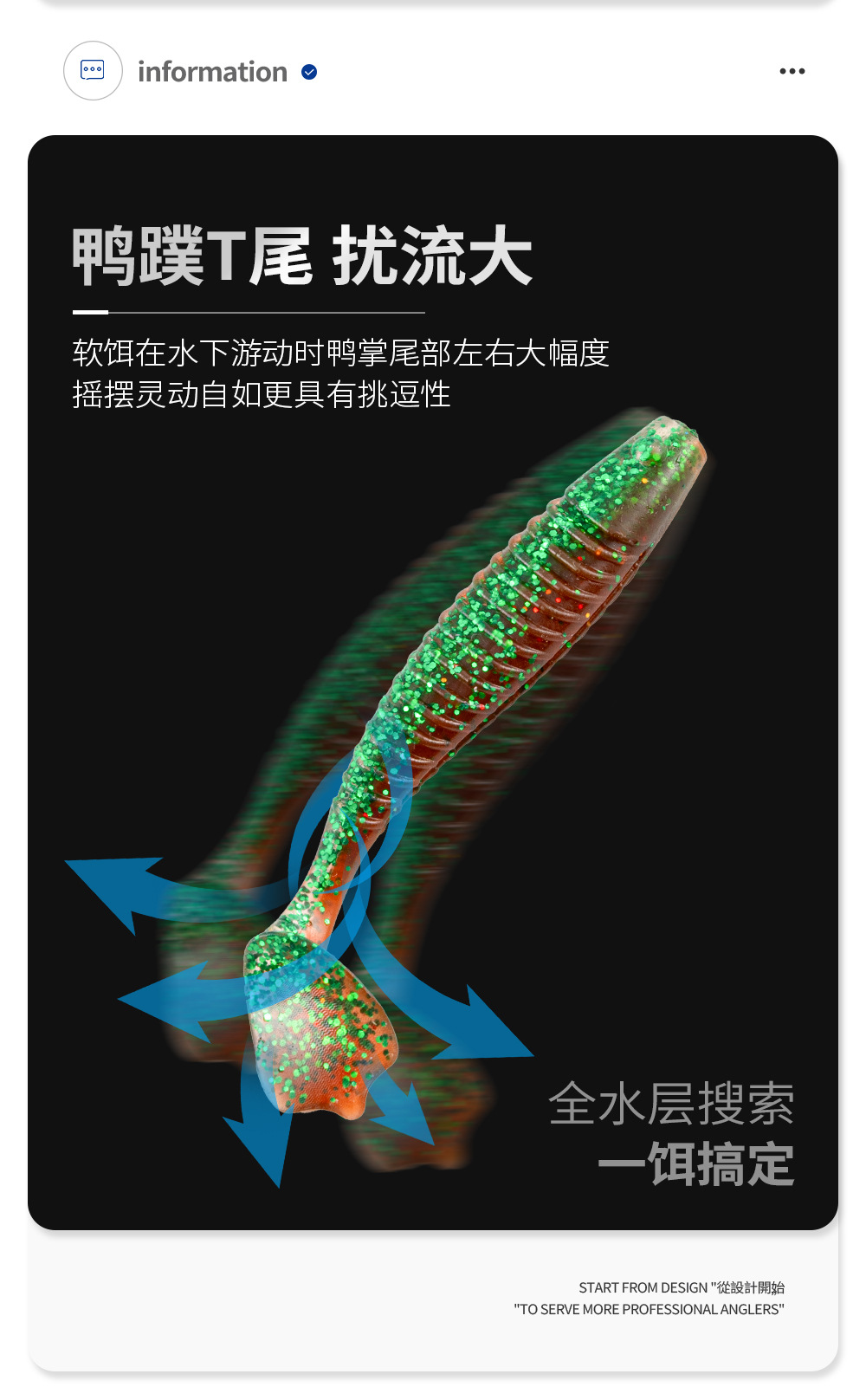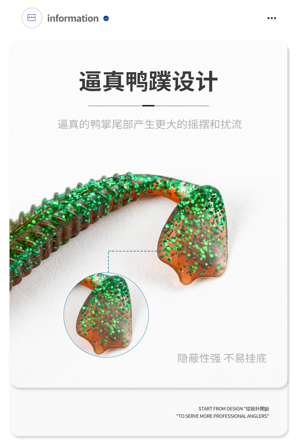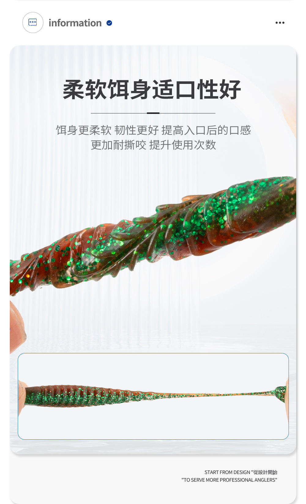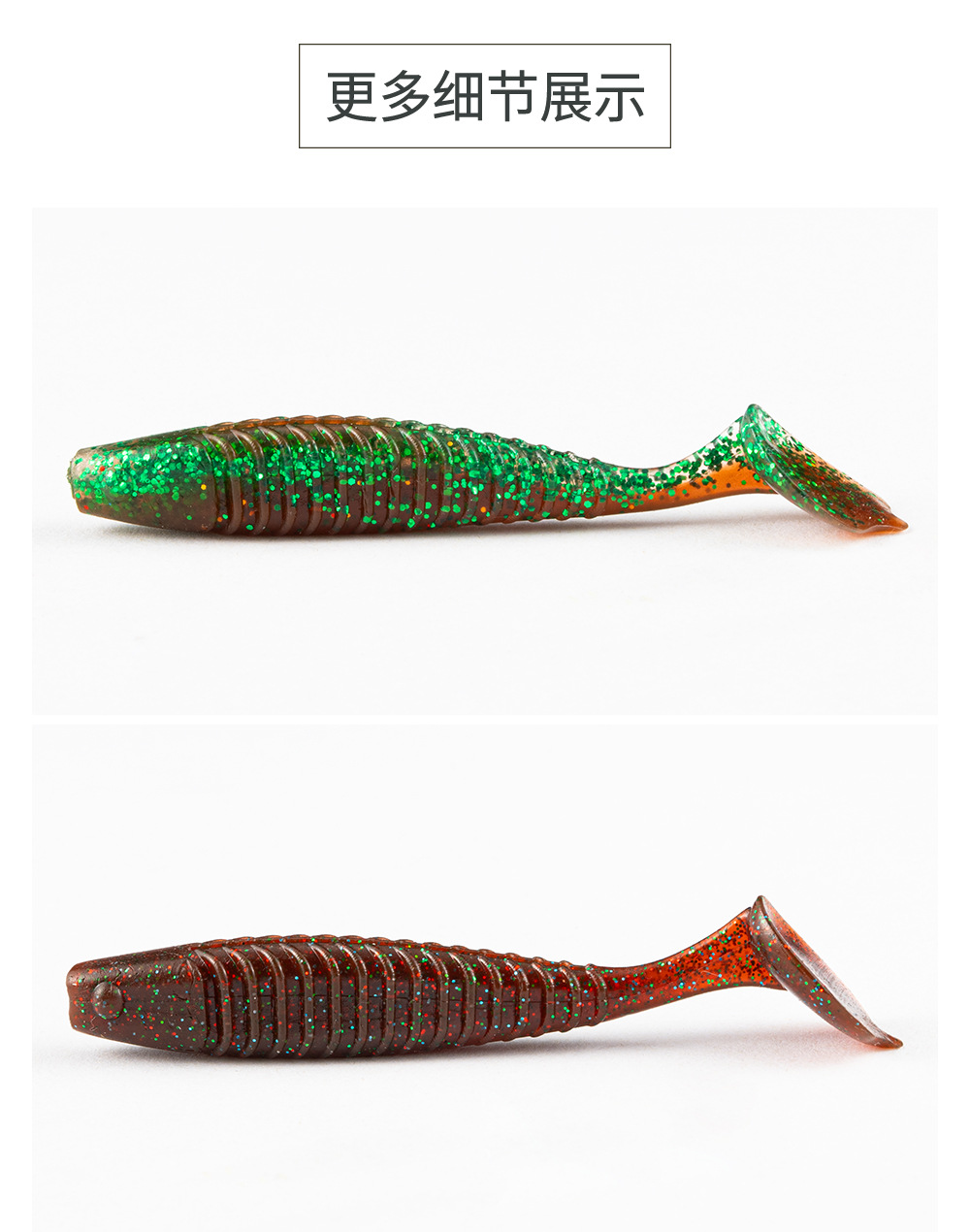 注意: 本产品属于tpe材质,不可接触高温暴晒,不可以跟其他材质软饵或饵盒接触,否则容易产生化学反应,软饵融化