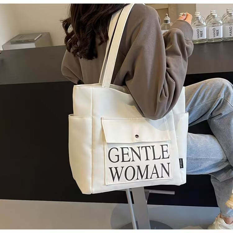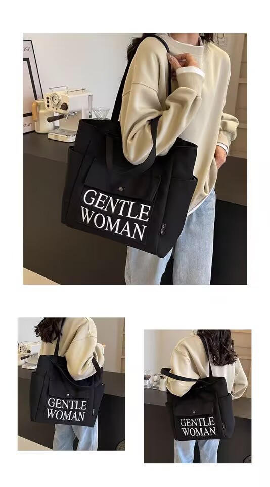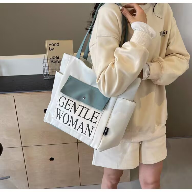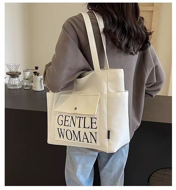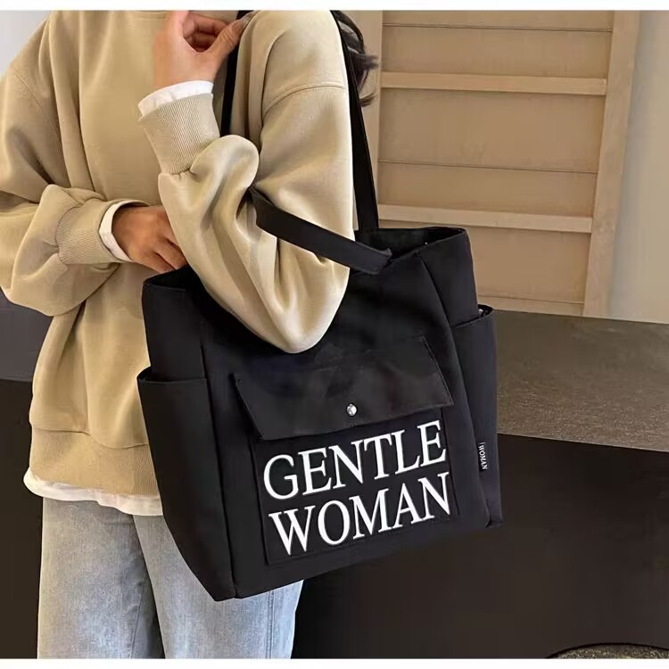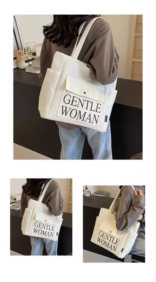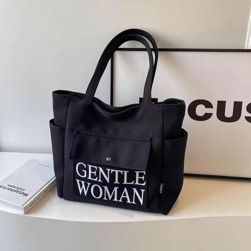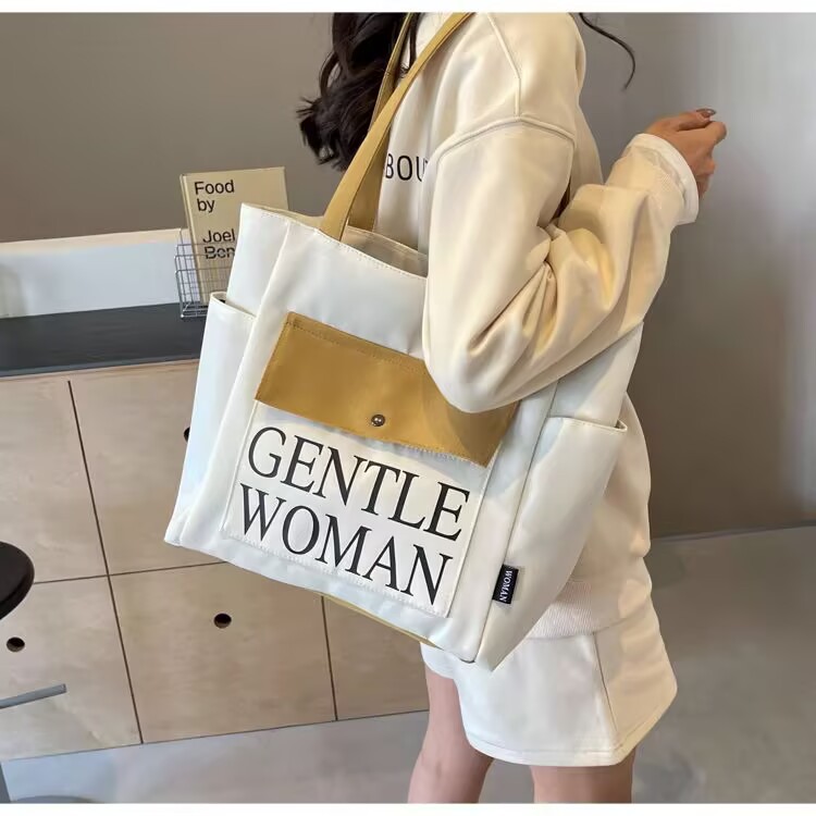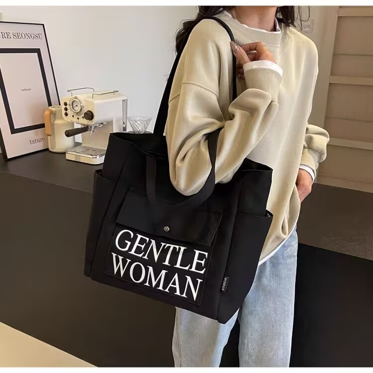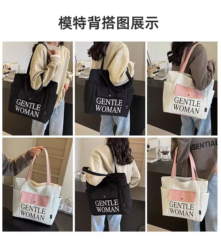 シンプルカジュアルトートバッグ卸売大容量おしゃれ通勤キャンバスバッグ海外販売新作レタートレンドショルダーバッグ