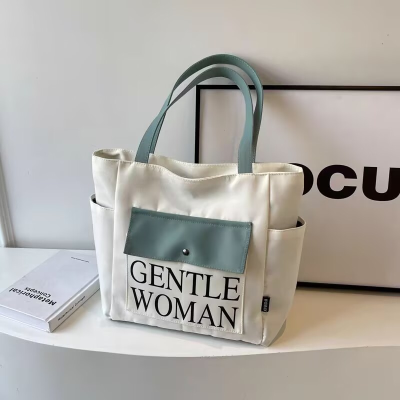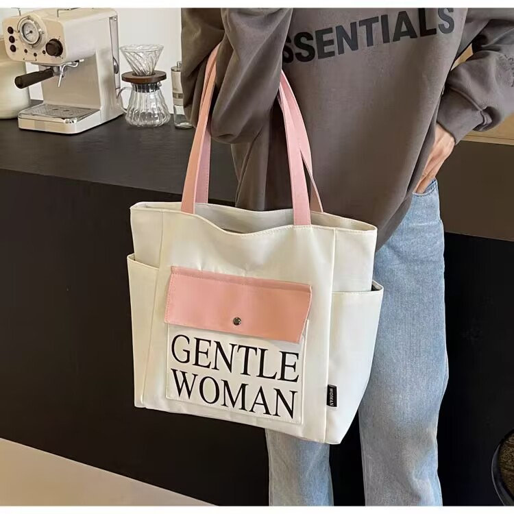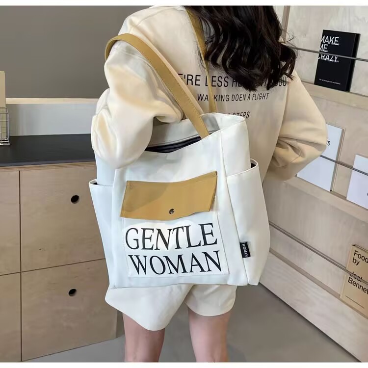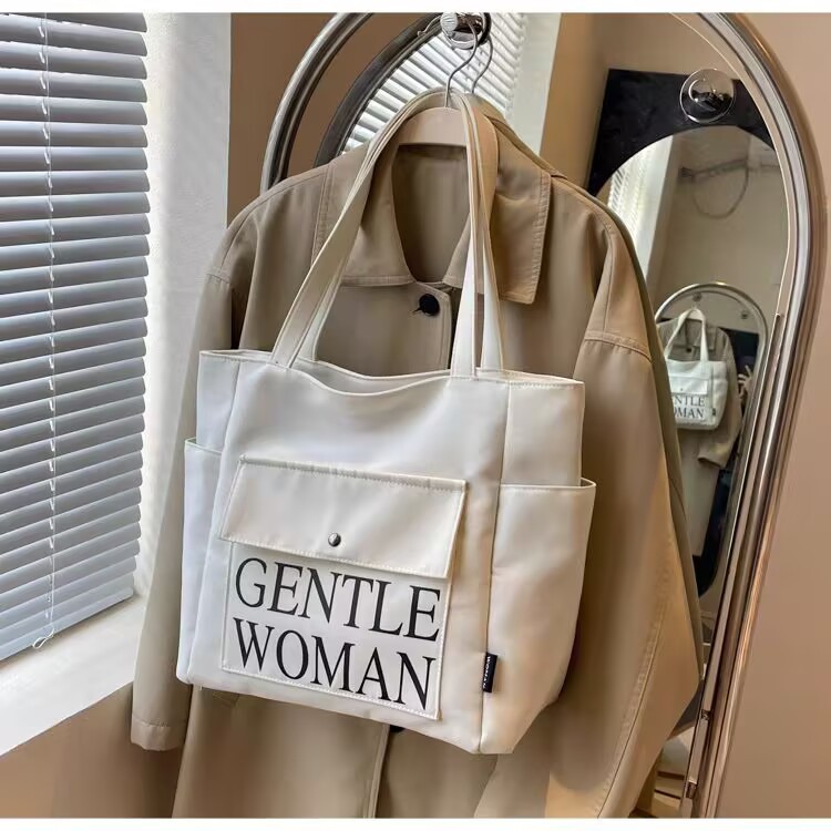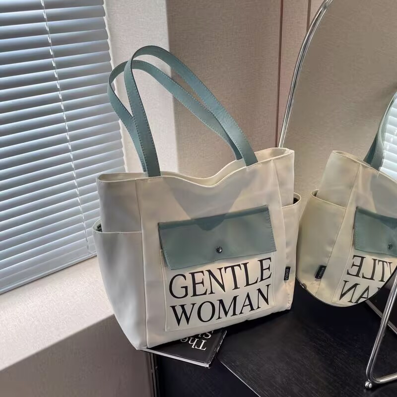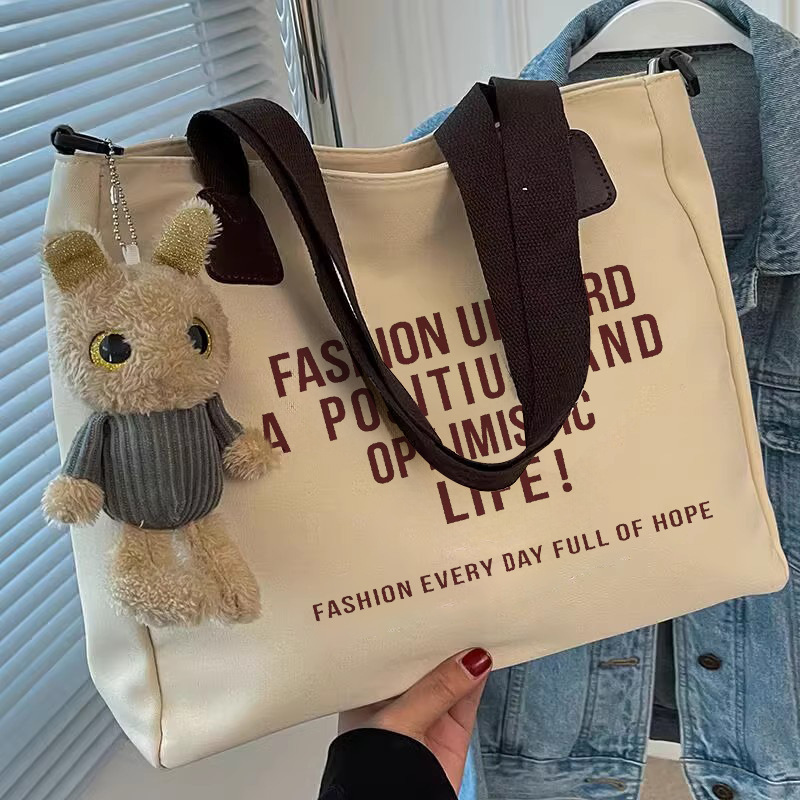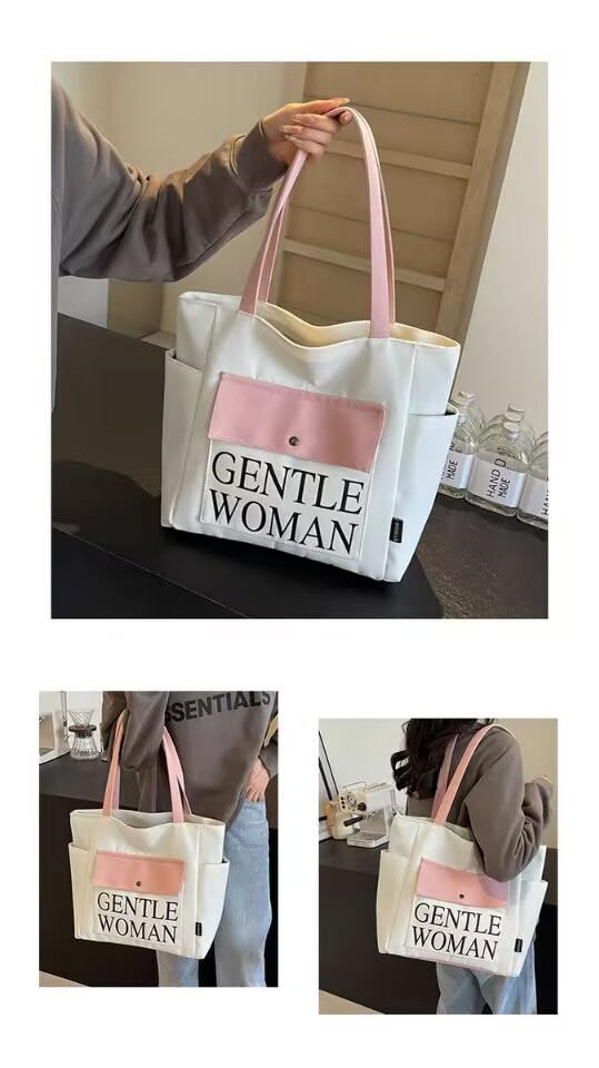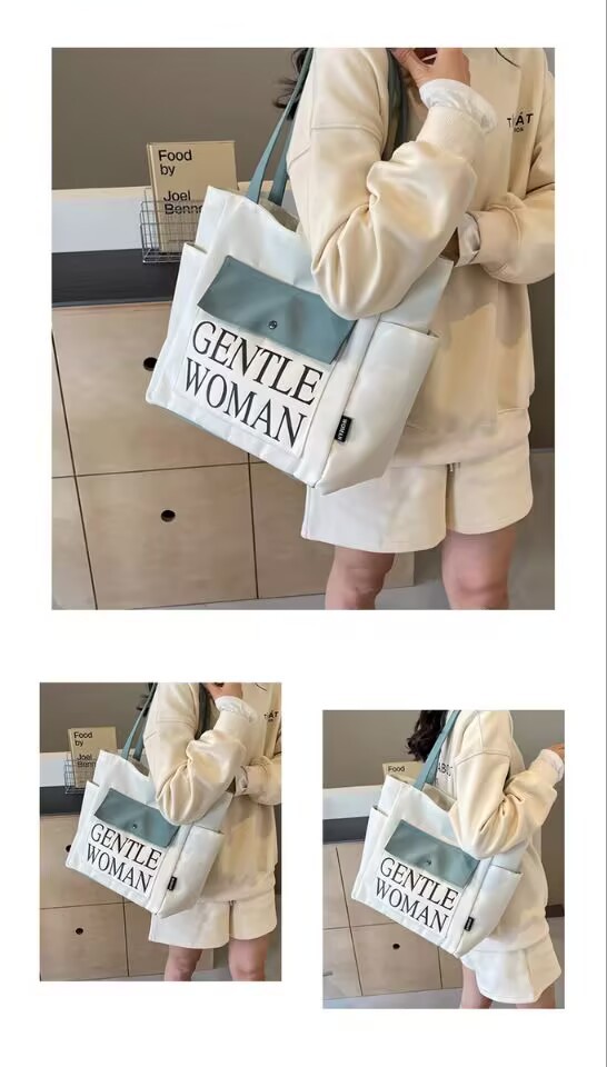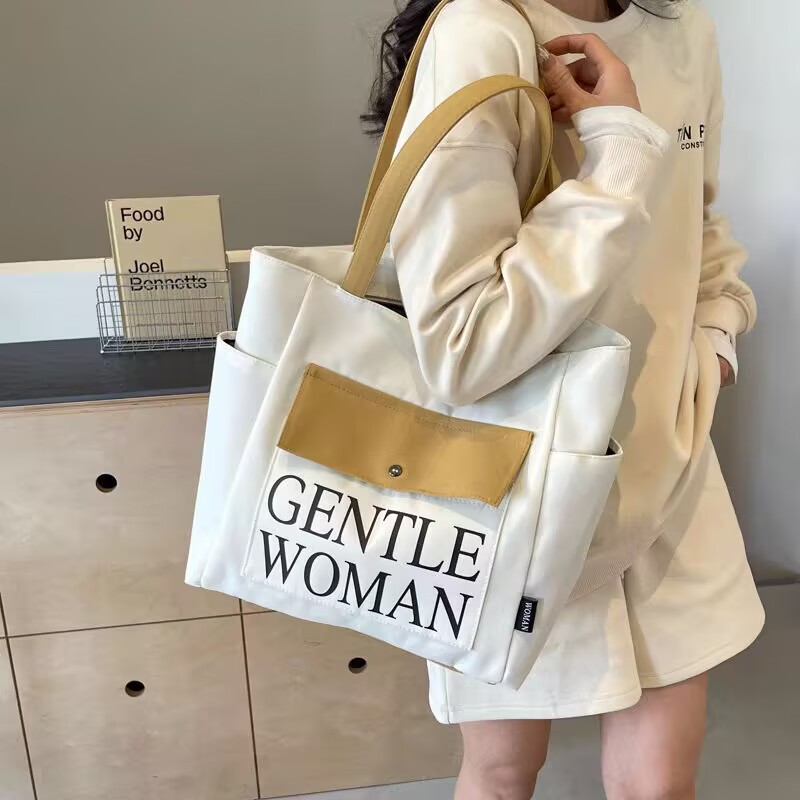 シンプルカジュアルトートバッグ卸売大容量おしゃれ通勤キャンバスバッグ海外販売新作レタートレンドショルダーバッグ