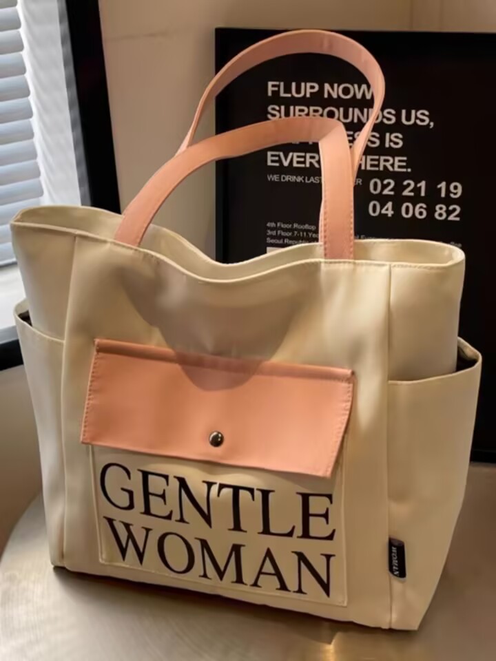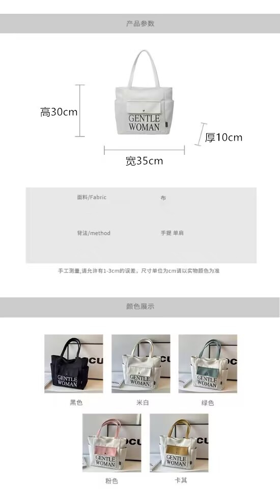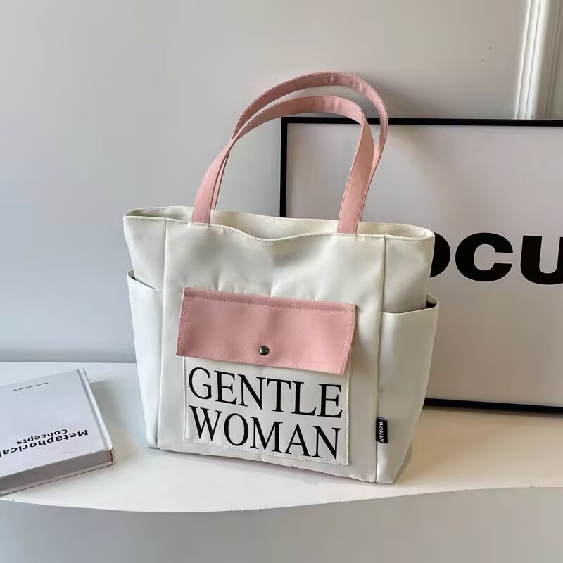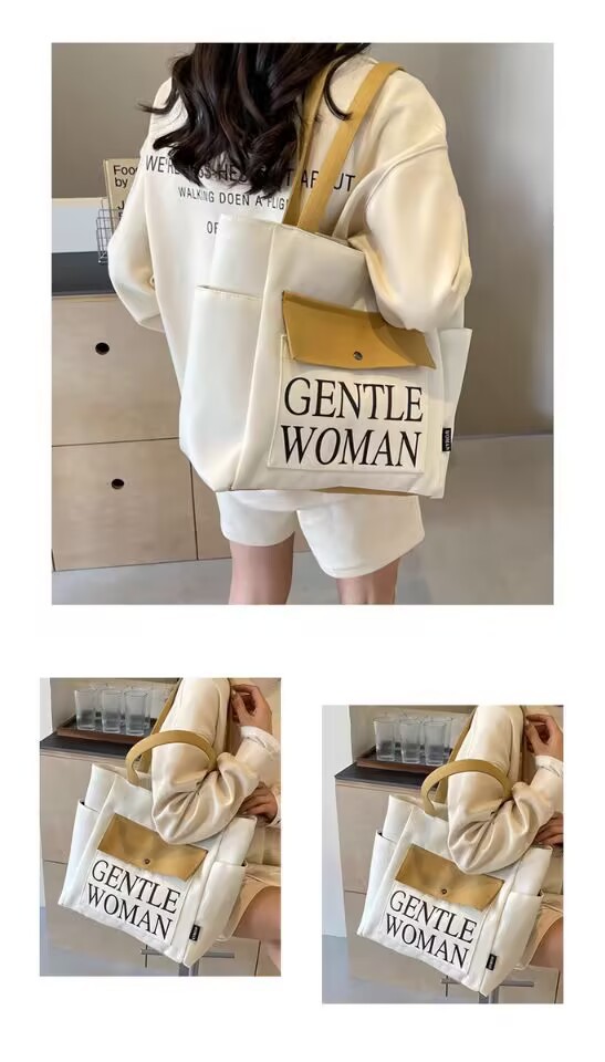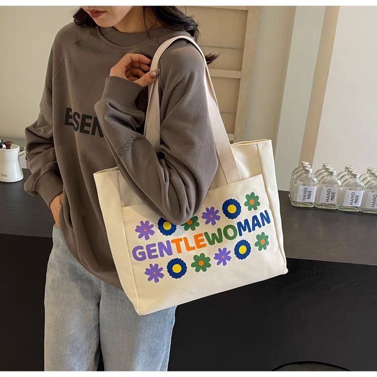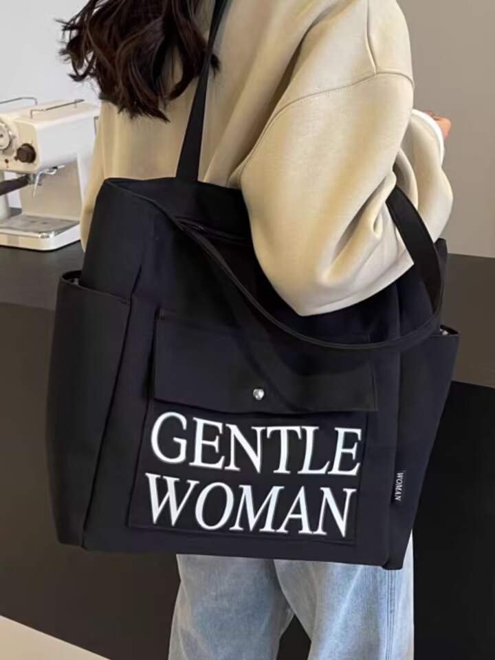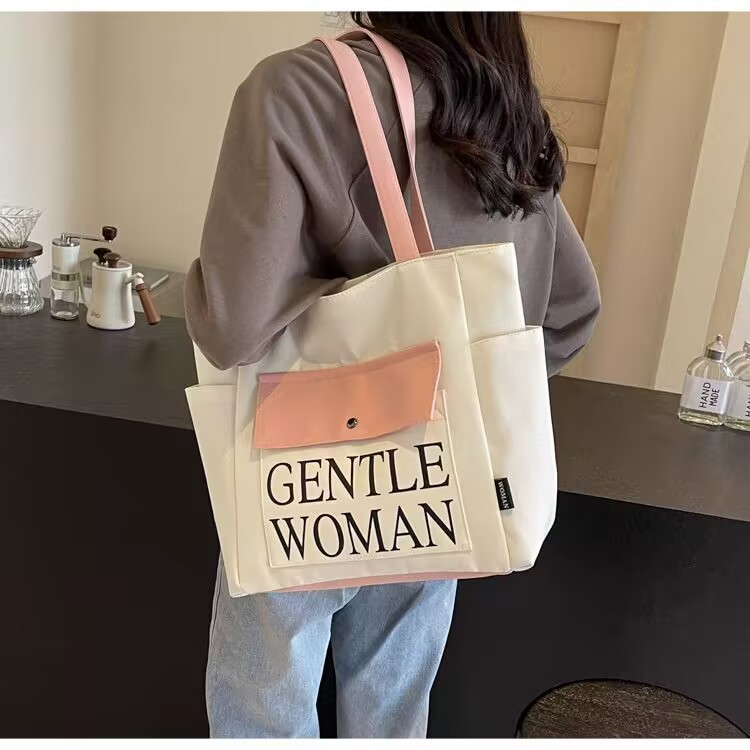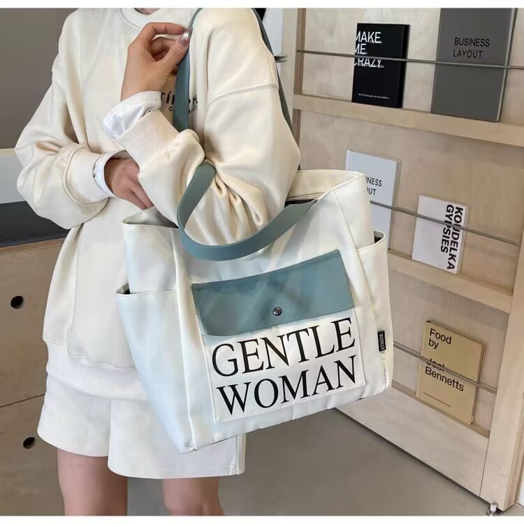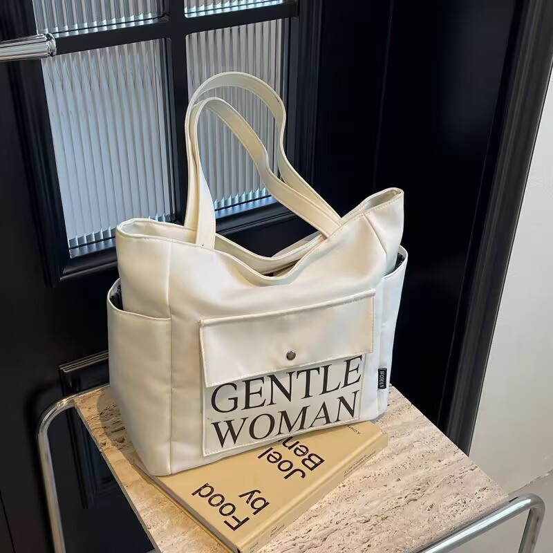 シンプルカジュアルトートバッグ卸売大容量おしゃれ通勤キャンバスバッグ海外販売新作レタートレンドショルダーバッグ
