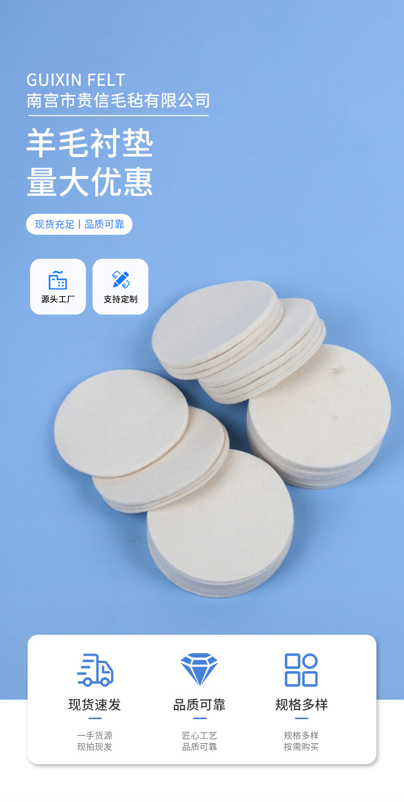 卸売り羊フェルトマットは耐摩耗性シール工業油吸収フェルト羊フェルト布の細い白い研磨フェルトメーカーを厚くした
