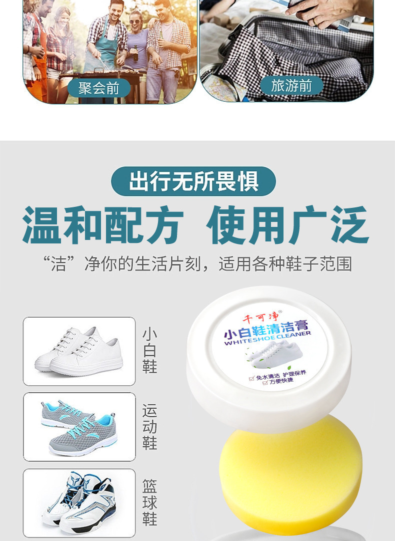 千可净多功能小白鞋清洁膏皮包具清洁去污增白免洗保养擦鞋清洁膏