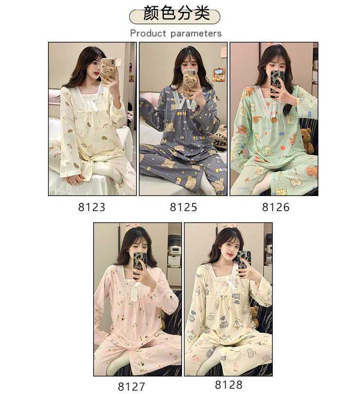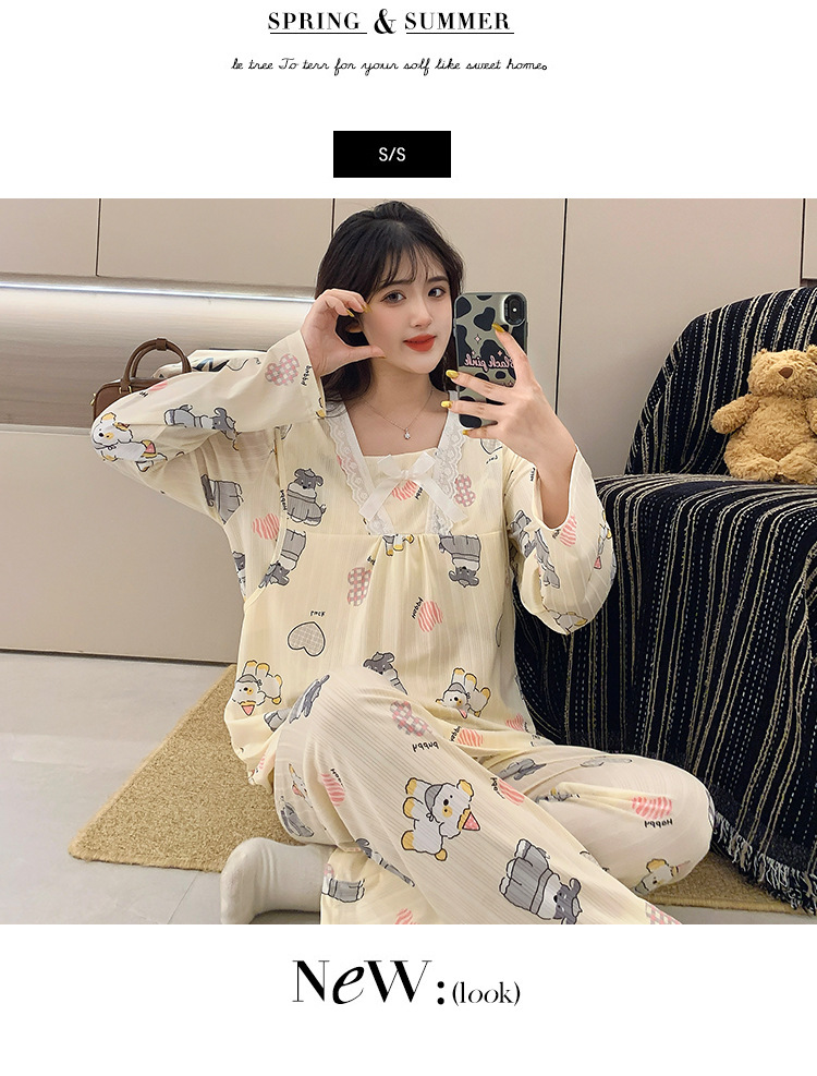 2025月子服春夏4薄手産後ファッションパジャマ産婦授乳中授乳妊婦ホームウェアセット5