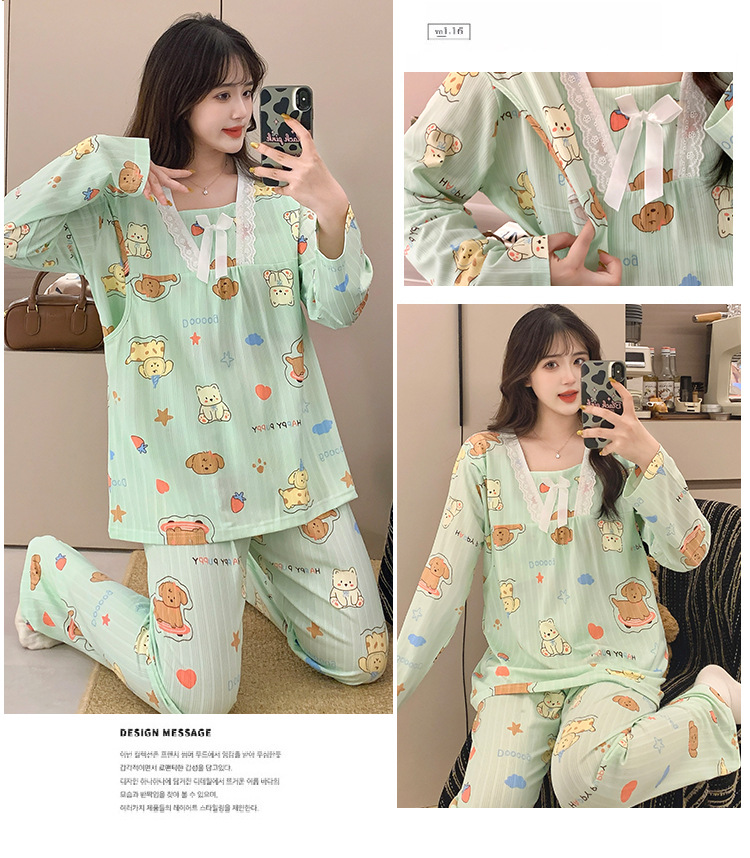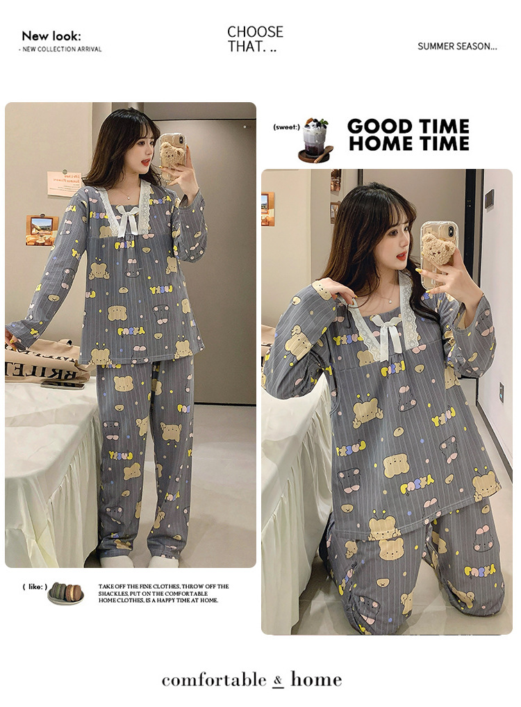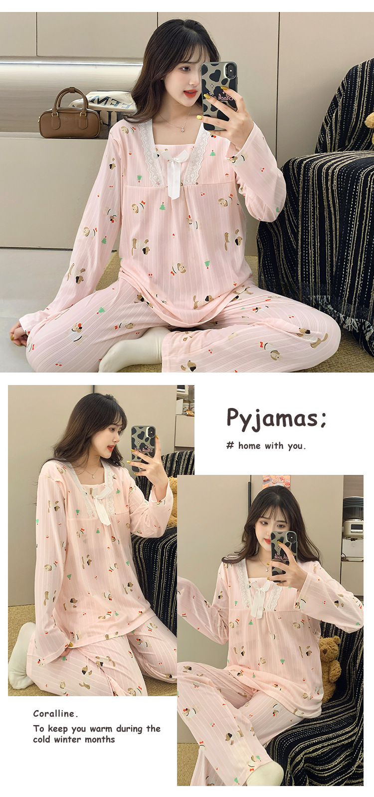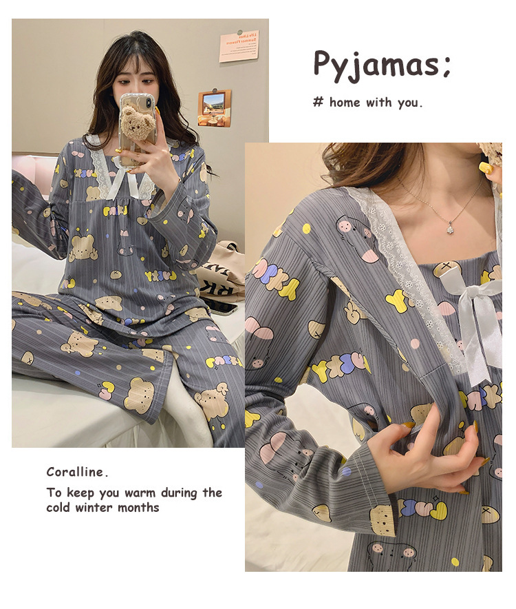 2025年秋冬用女性用パジャマ、11月向け厚手綿入り産後服、エアレイヤー付き大きいサイズホームウェアセット、10月向け