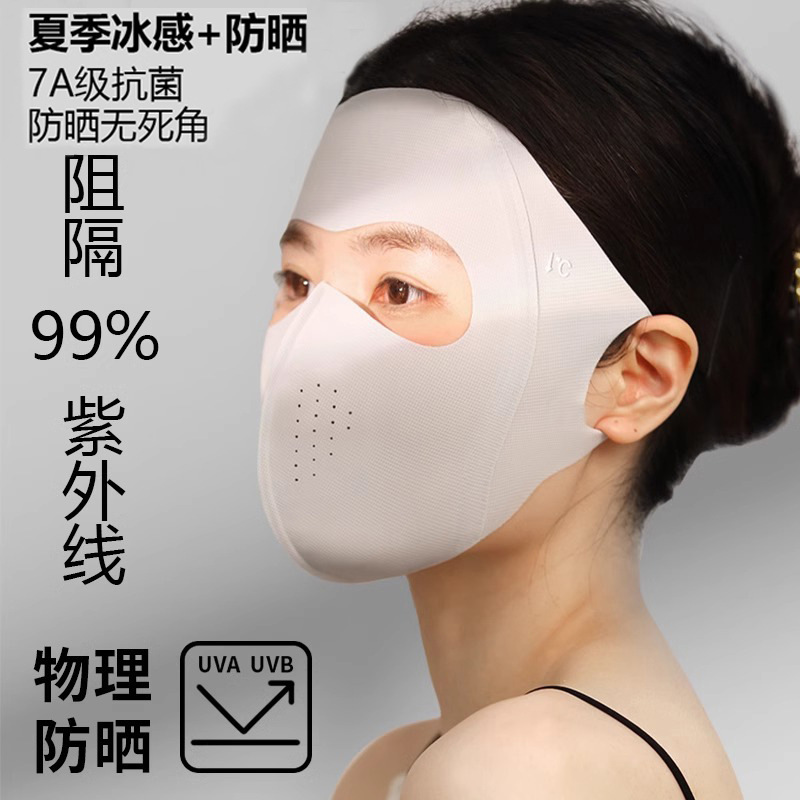 日焼け止めマスク紫外線防止レディース高颜値日よけフルフェイスマスク氷糸アイ角立体夏通気