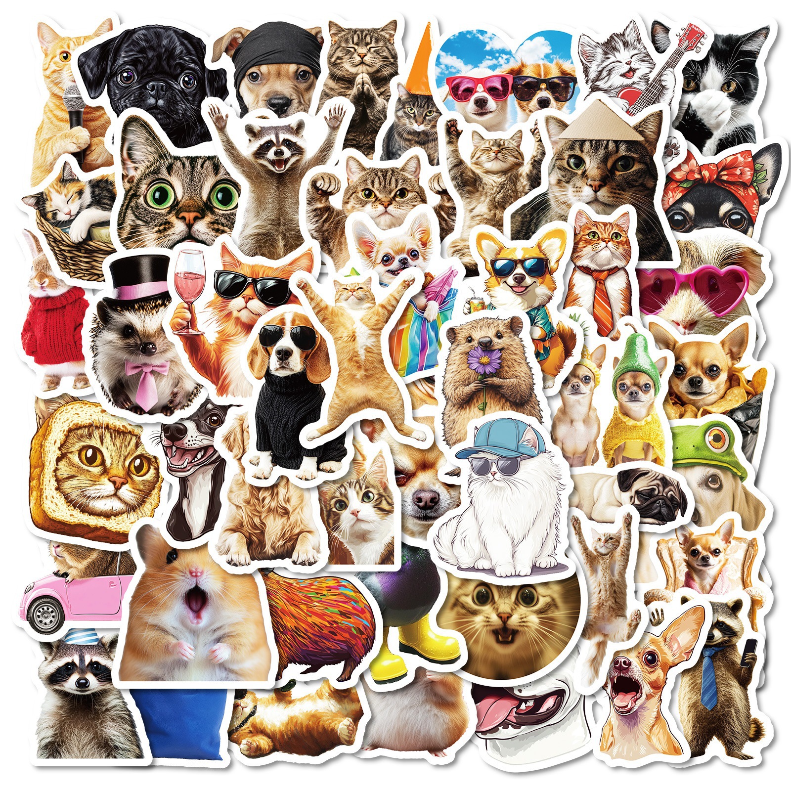 速卖通跨境热卖50张创意小动物贴纸小狗猫咪仓鼠不重复装饰贴画