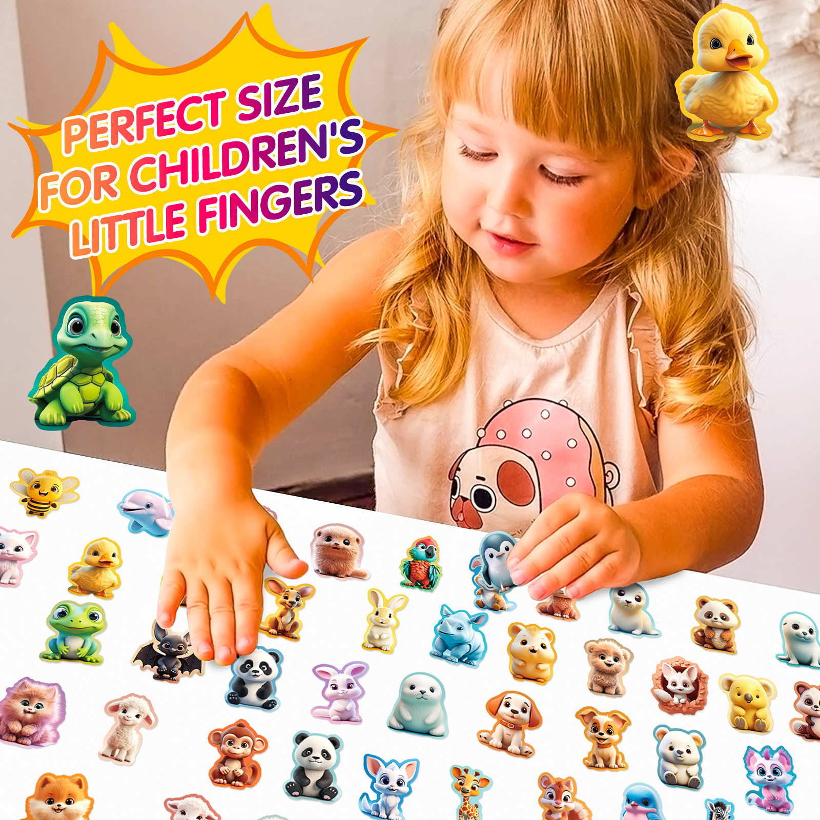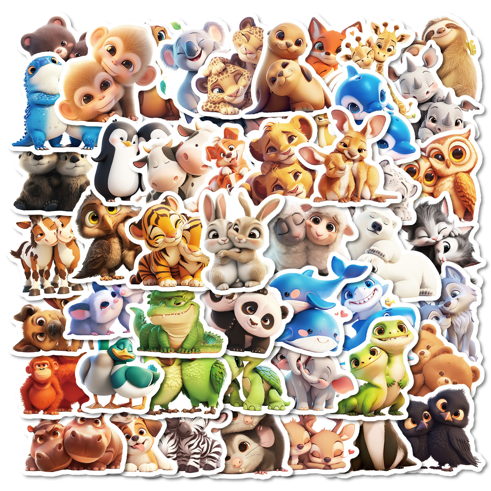 国境を越えた50枚の3D動物ステッカー、かわいい漫画風インスタ風クリエイティブ3D動物の頭部、子供用防水装飾ステッカー