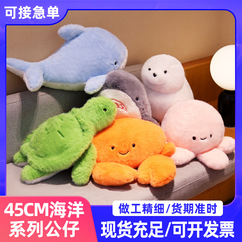 正版鼻涕熊海洋系列毛绒玩具公仔鲸鱼螃蟹鲨鱼乌龟掌中宝可爱玩偶