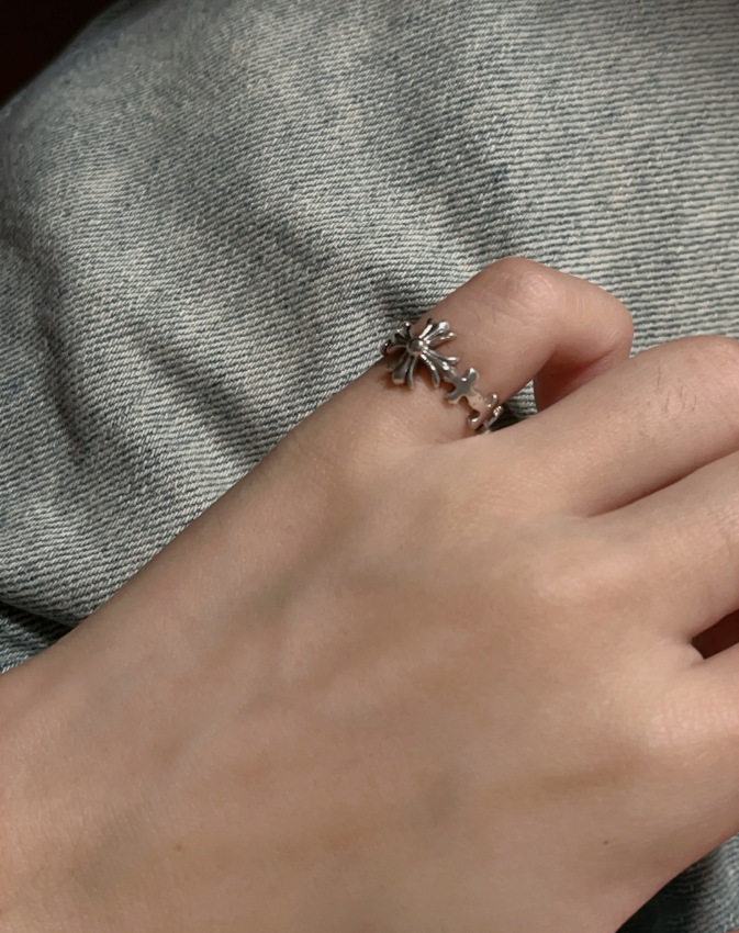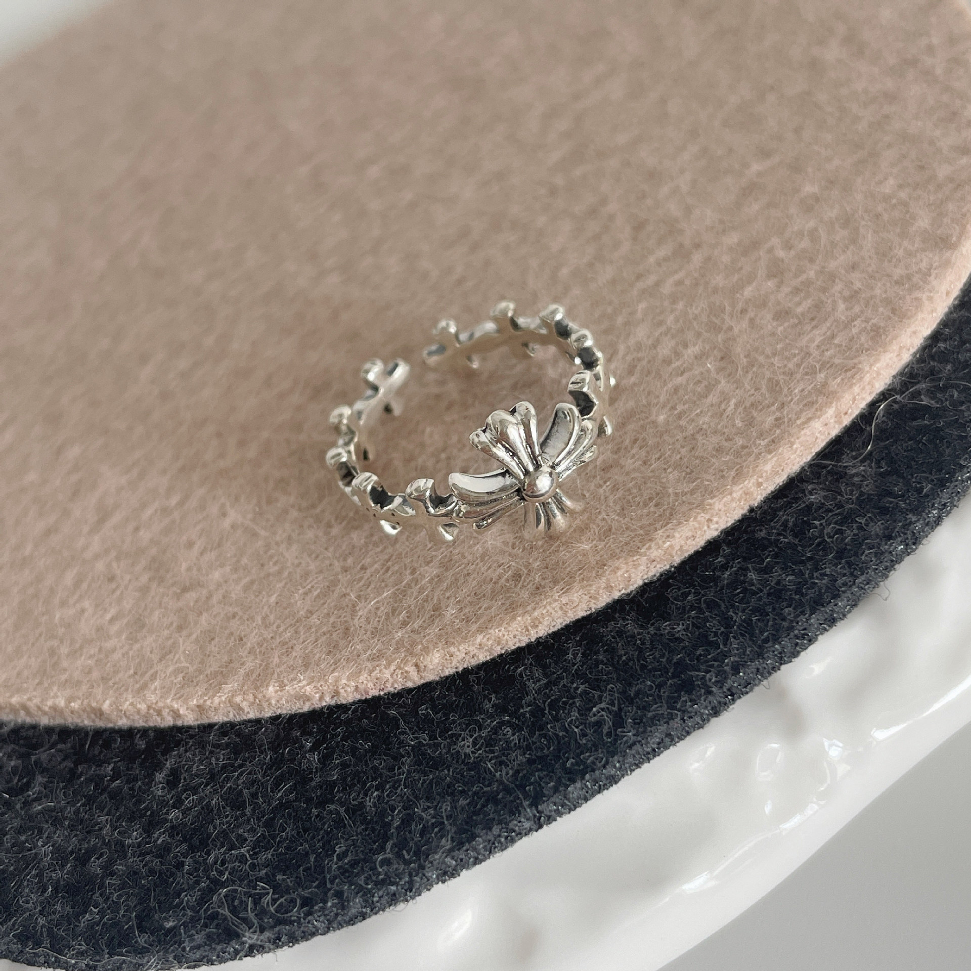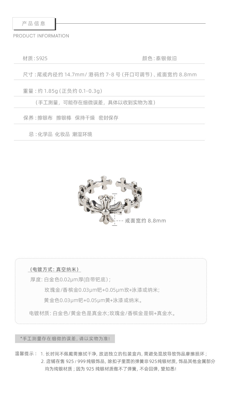 ティチ S925 純銀リング ヴィンテージ加工 クロス テールリング 重ね付け パンク系 スイートクール 個性的デザイン ジュエリー