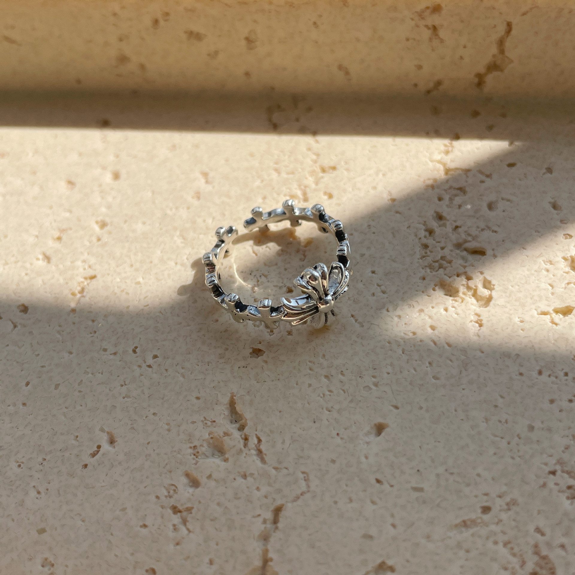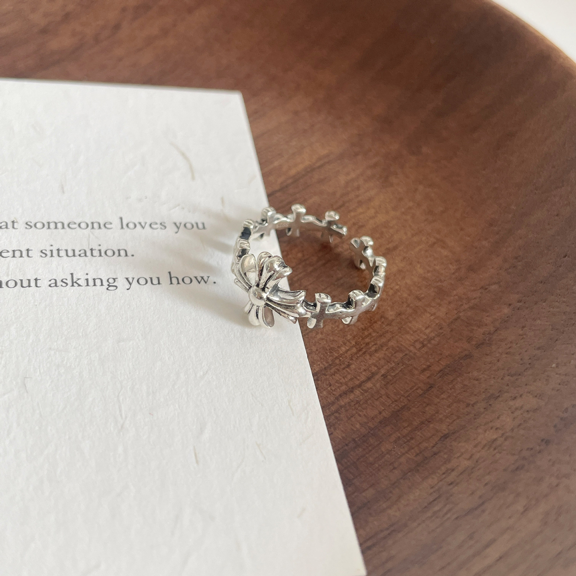 ティチS925純銀レース花輪指輪の女性気質レトロで豪華で洗練された透かし彫りの花がリング潮を指している