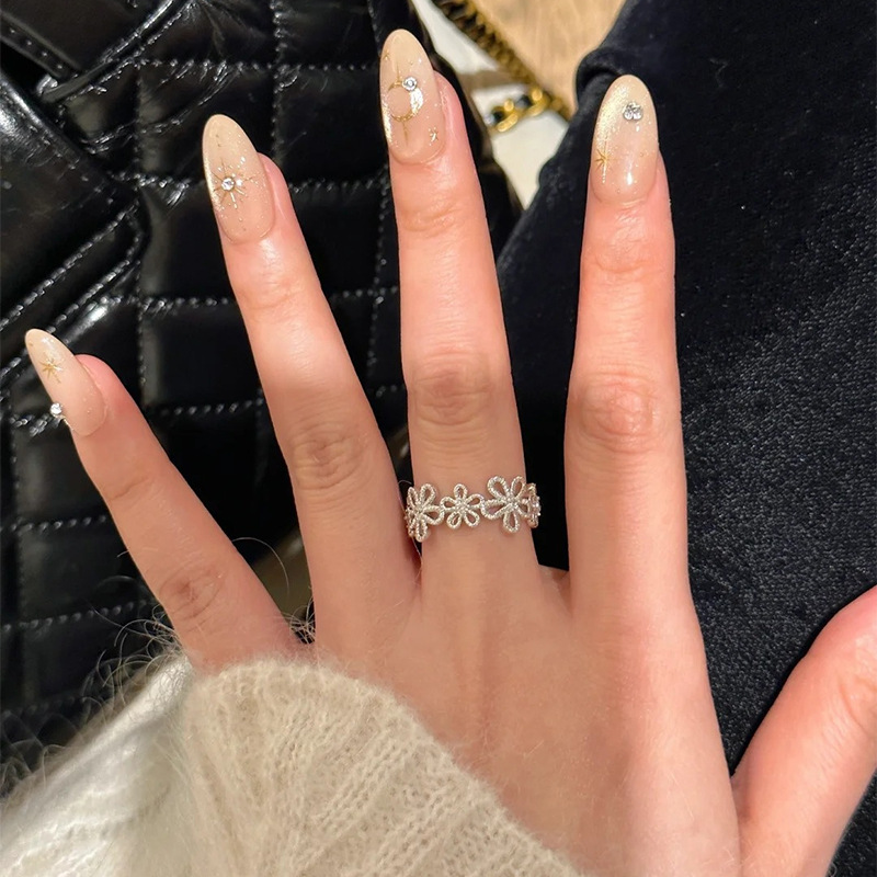 Diqi スターリングシルバー 999 ニッチライト高級四芒星リング女性の小さな新鮮で優しいマイクロ象嵌スターオープン人差し指リング