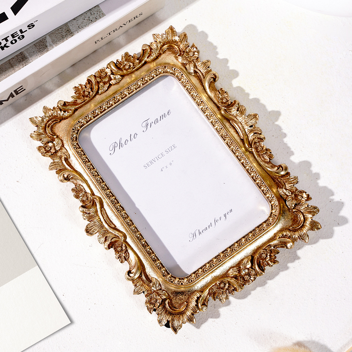 古風な金色のヨーロッパ風の宮廷風の樹脂の額縁をまねて、家庭のデスクトップの暖かい装飾の額縁の置物