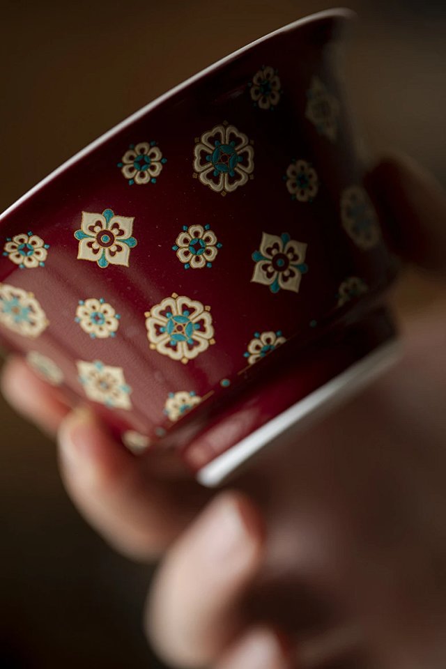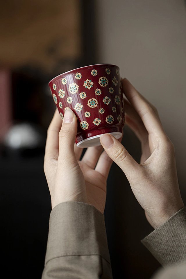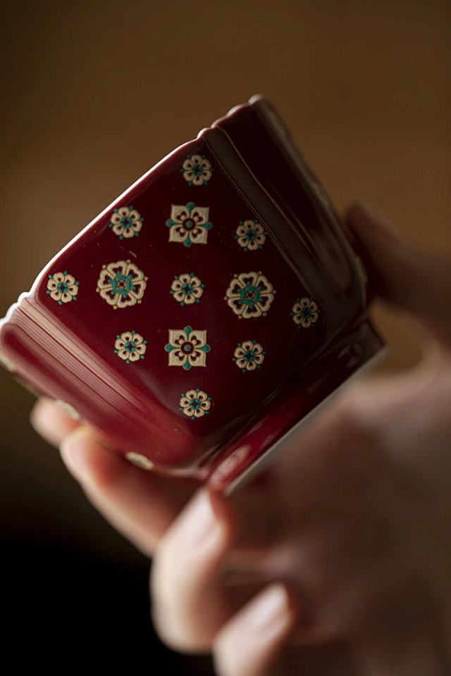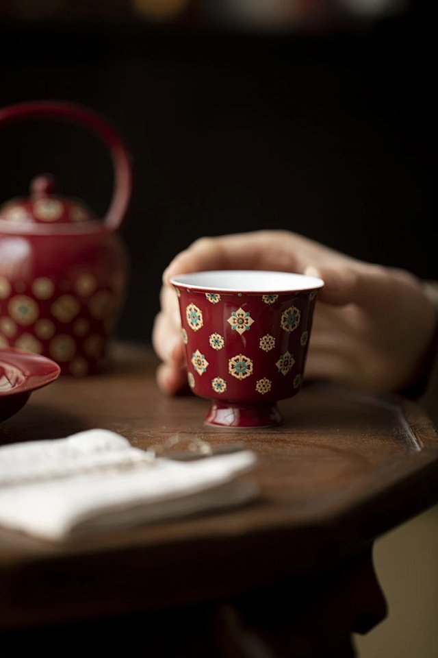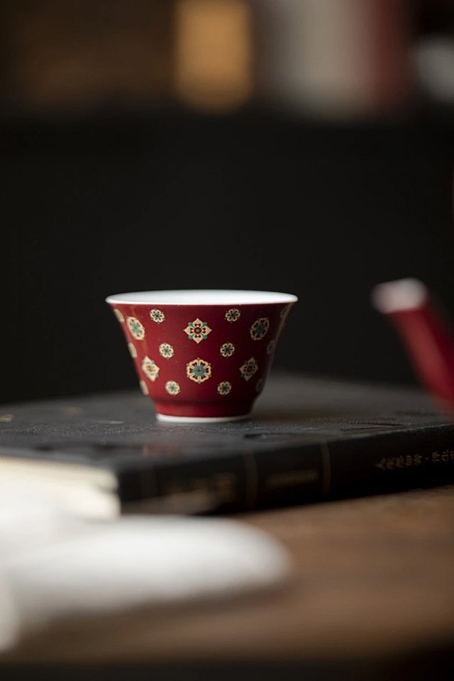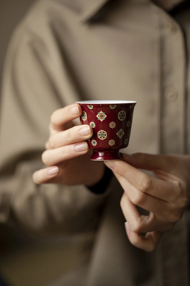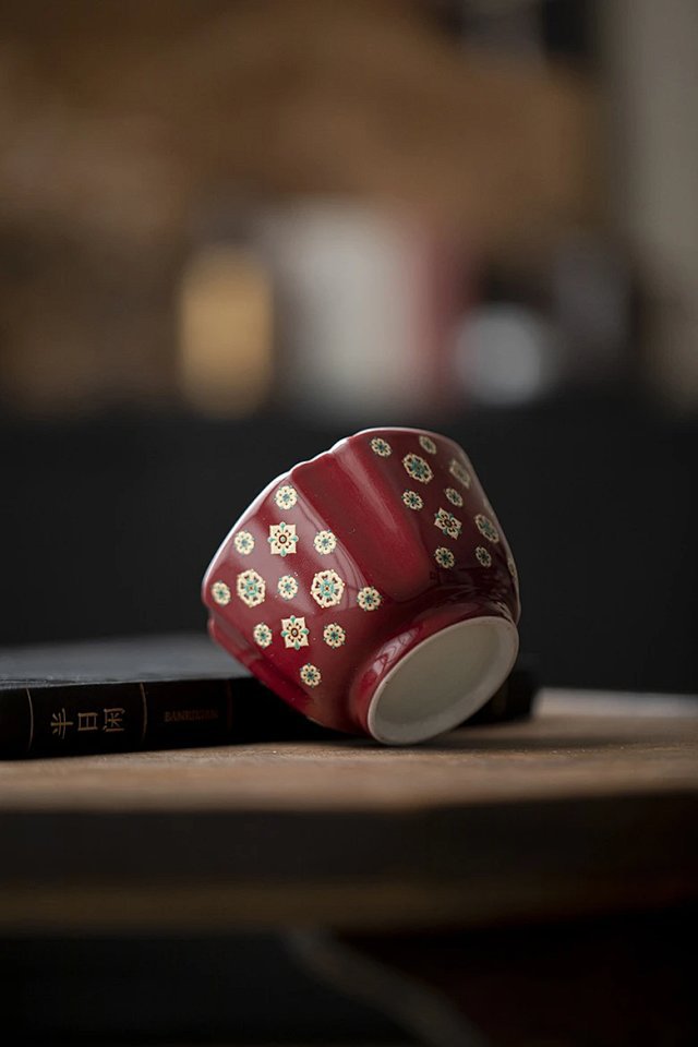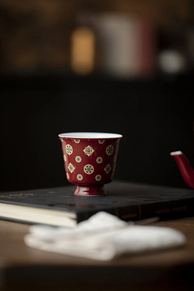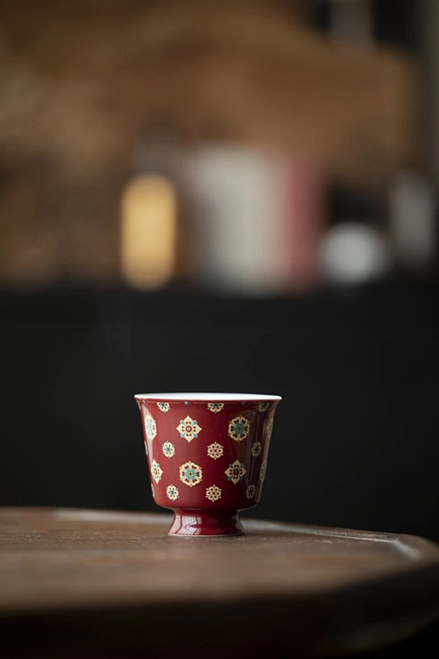 言造紅琵琶紋復古高足茶杯陶磁器品茗杯国風主人杯カンフー茶具