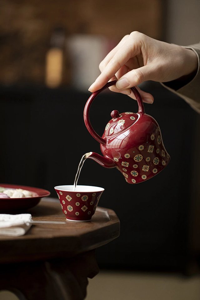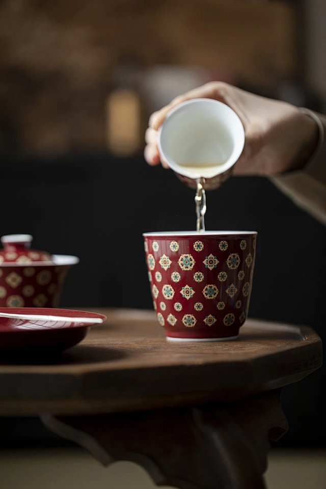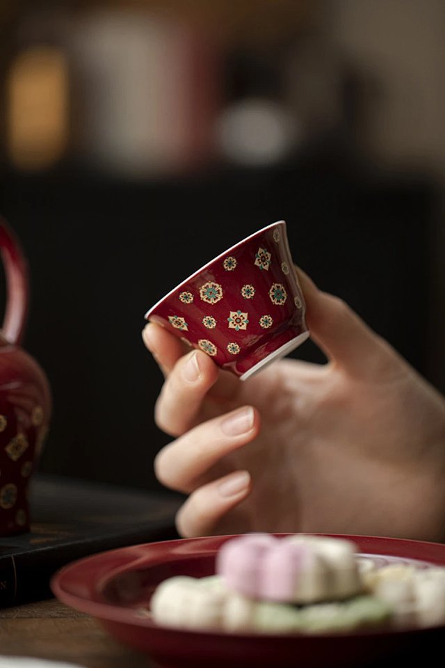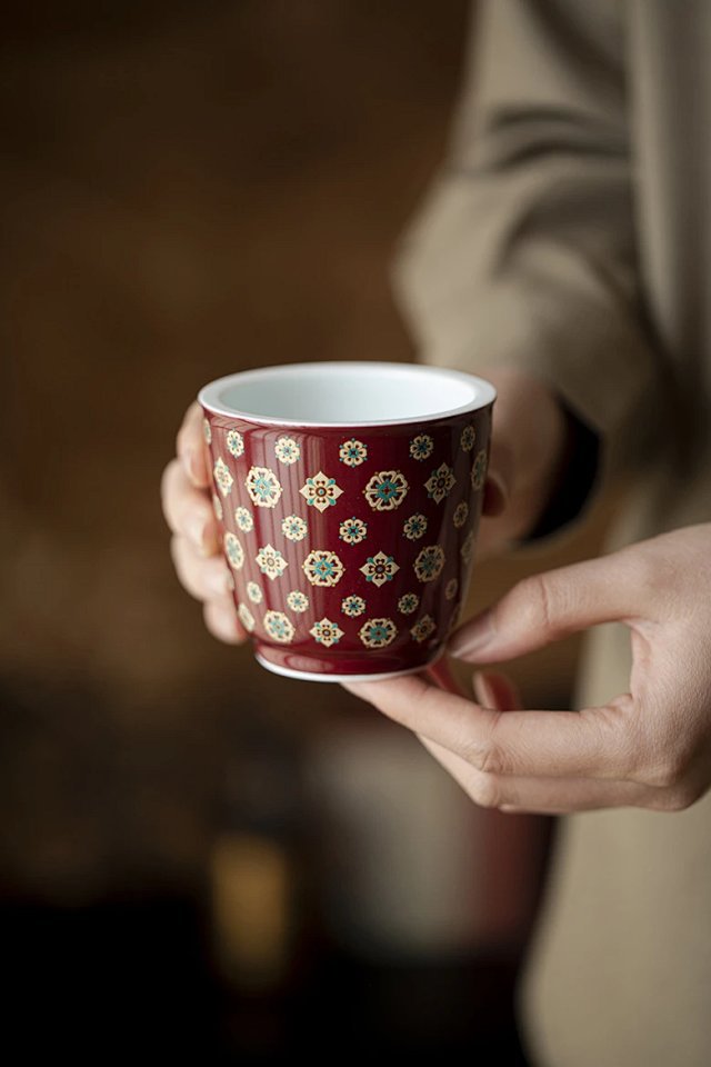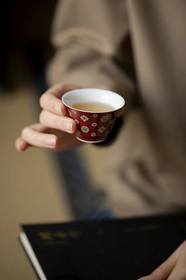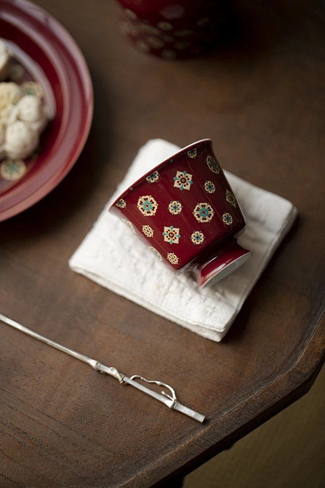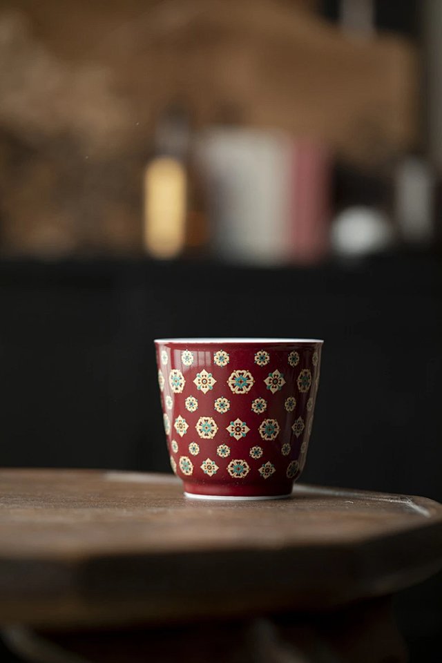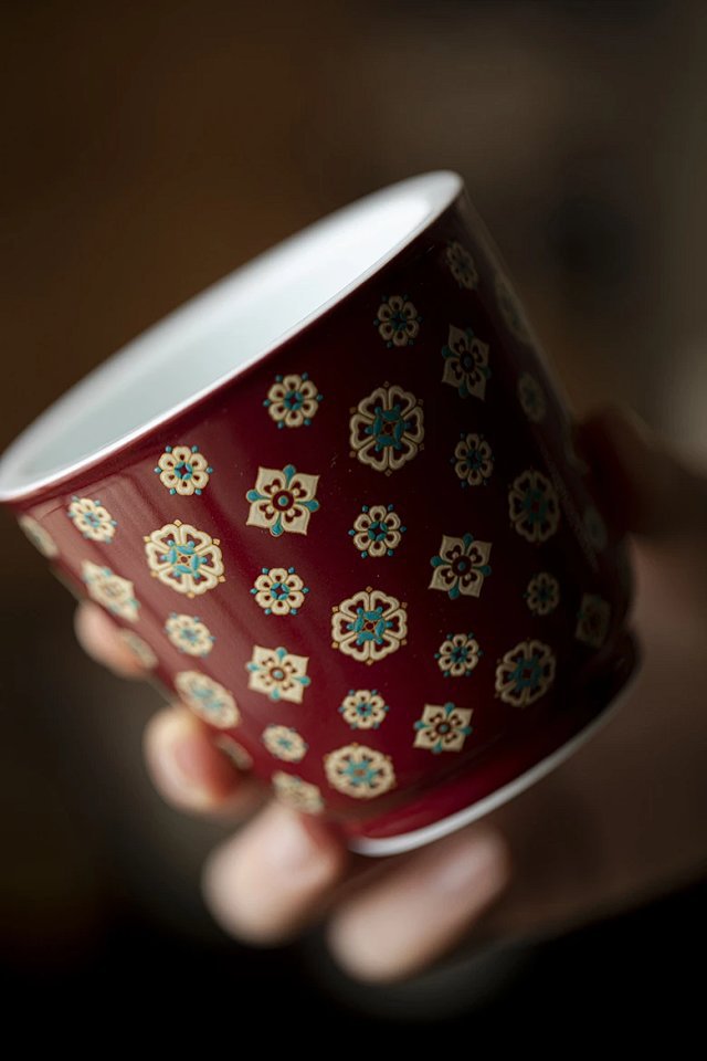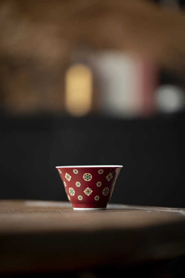 言造紅琵琶紋復古高足茶杯陶磁器品茗杯国風主人杯カンフー茶具
